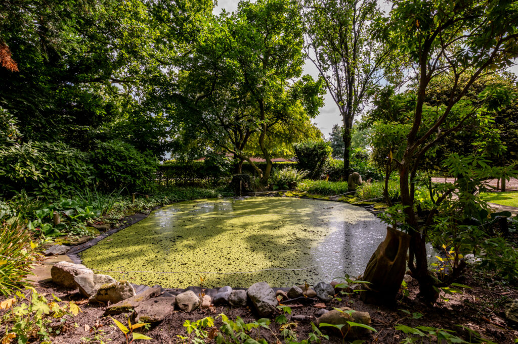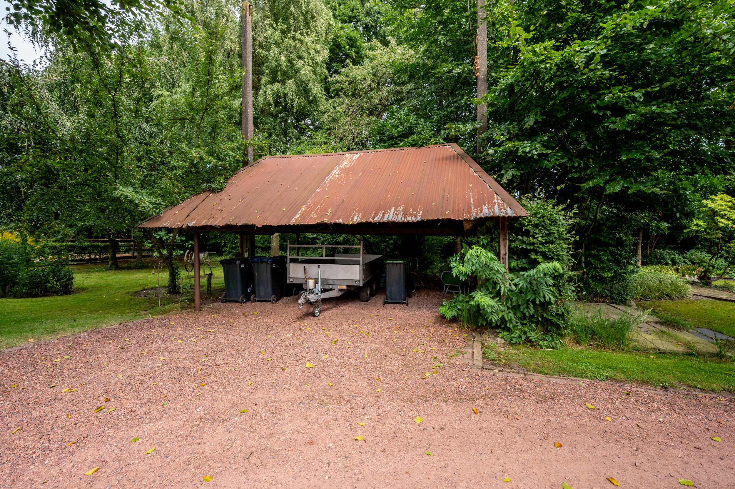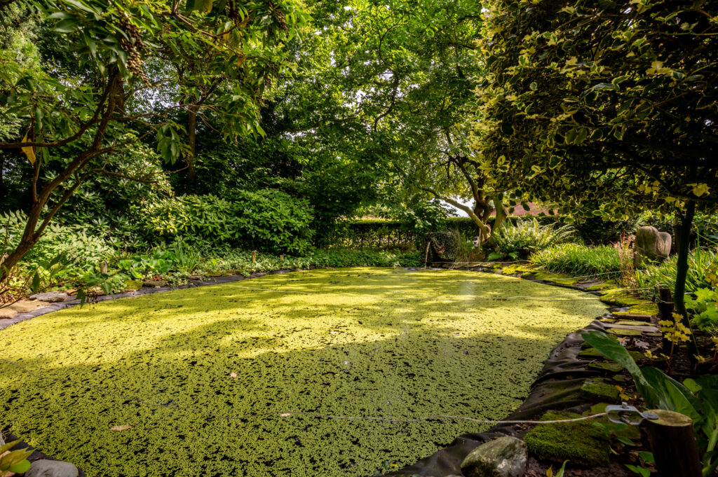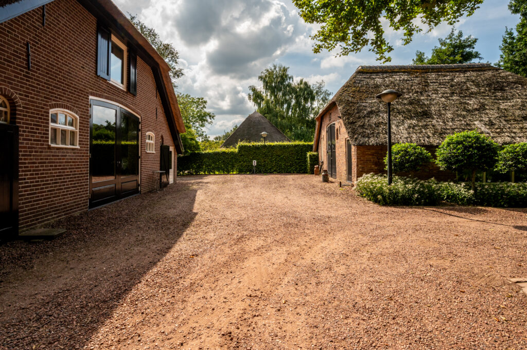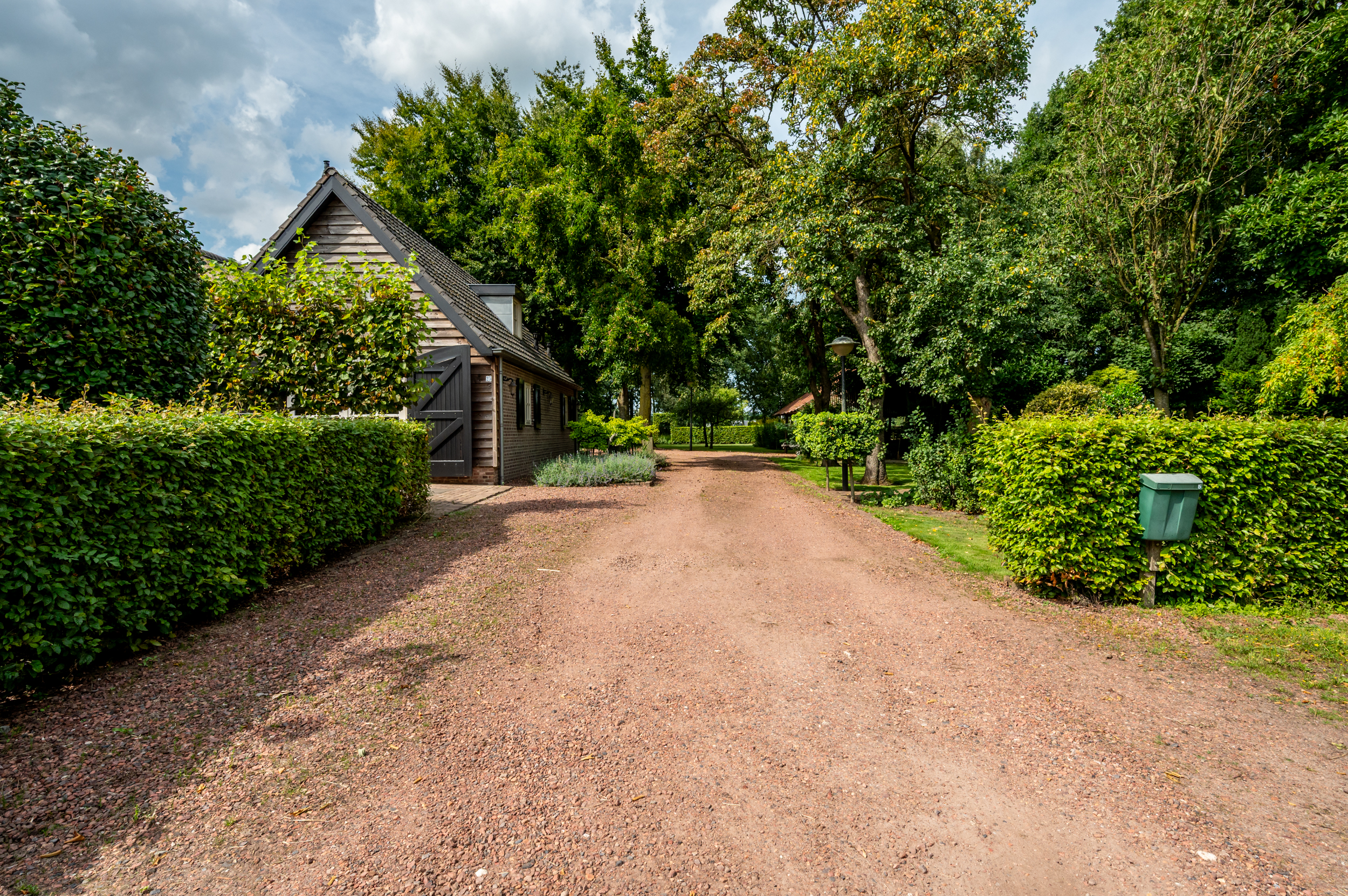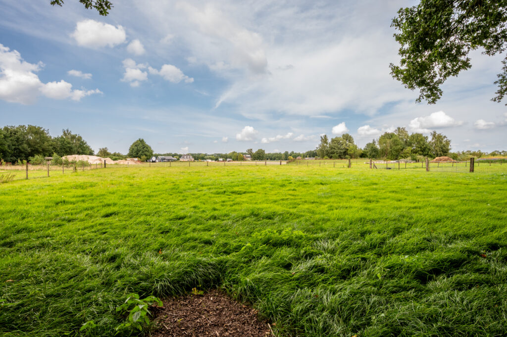 Het perceel is te omschrijven als een sfeervol boerenerf geheel omsloten door bomen. Zodra u via de oprit binnenrijdt langs de aloude perenbomen, ervaart u de rustgevende natuur en volop privacy. De klassieke boerderijtuin met hortensia’s, borders, perken en hagen omlijst de boerderij. Volwassen eiken- en beukenbomen, fruitbomen en een vijver met fontein laten zien hoe het buitenleven is bedoeld! Een enorme gazonpartij met daarachter verschillende tuinkamers worden afgewisseld met passend straatwerk. Kortom, uw eigen perceel geeft volop ruimte en rust. Het aangrenzende weiland is geschikt voor uw paarden of kleinvee aan huis.