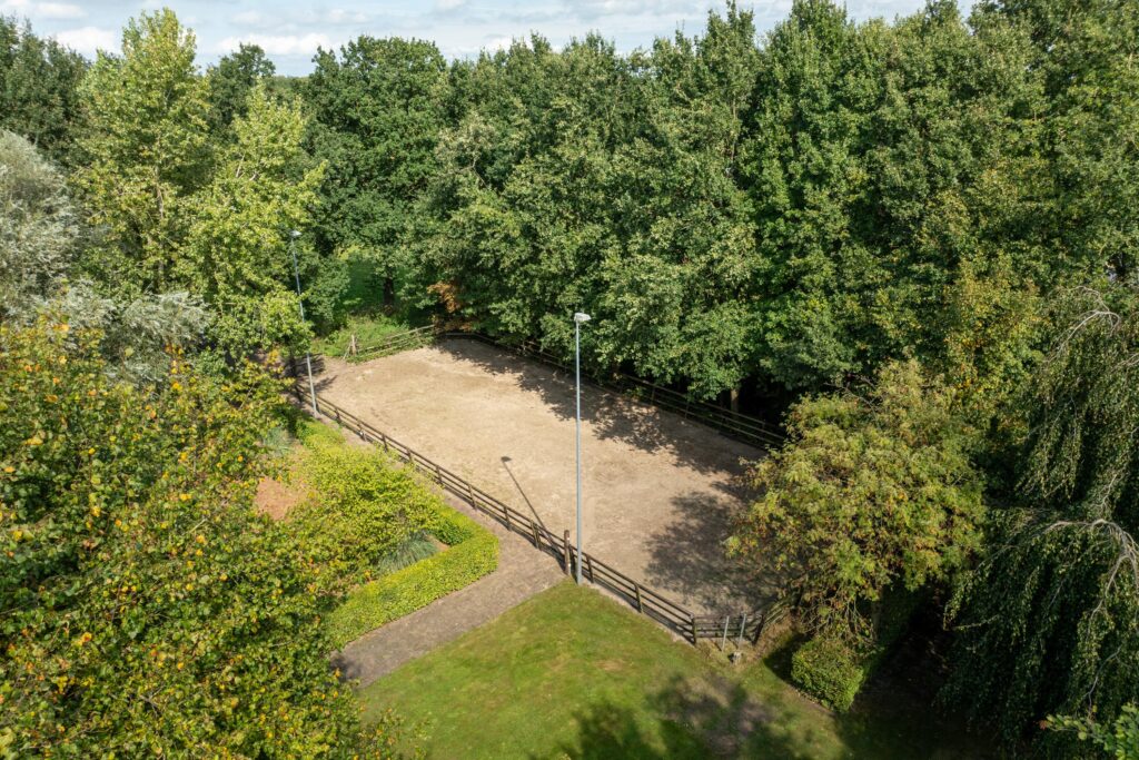 Voor de paardenliefhebber zijn de volgende faciliteiten aanwezig: een container met vier paardenboxen en een kapschuur voor uw machines. De rijbak (afmeting van 15m x 35m) heeft een bodem voorzien van drainage.