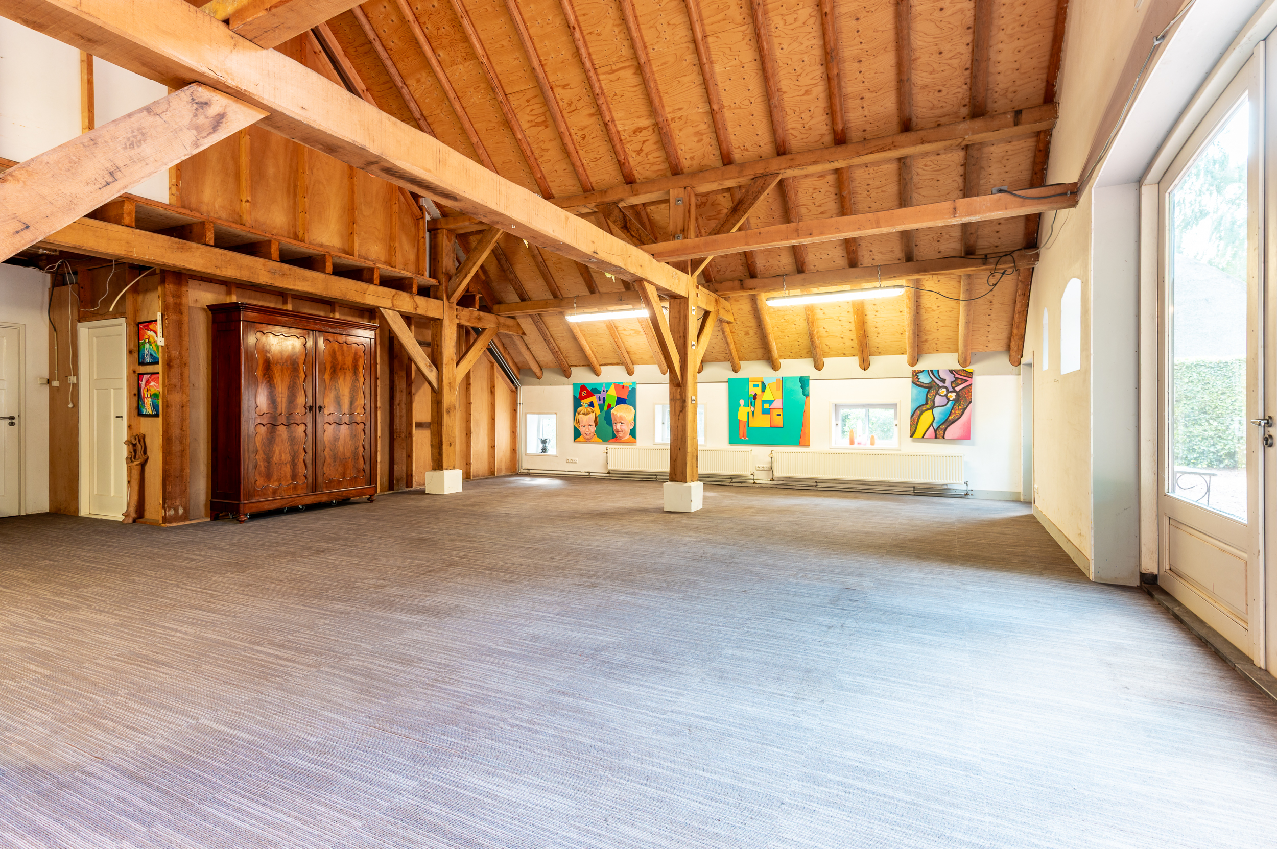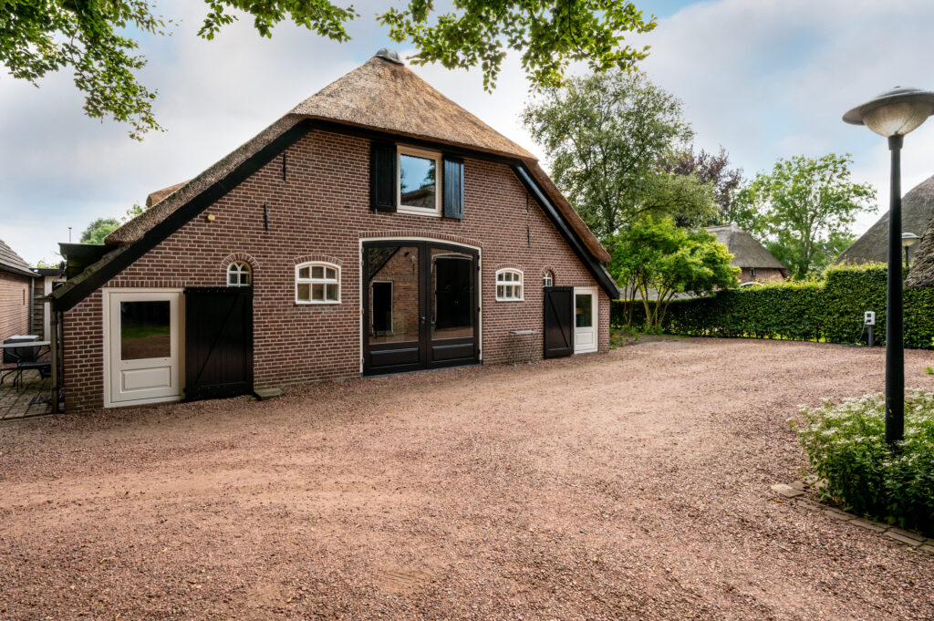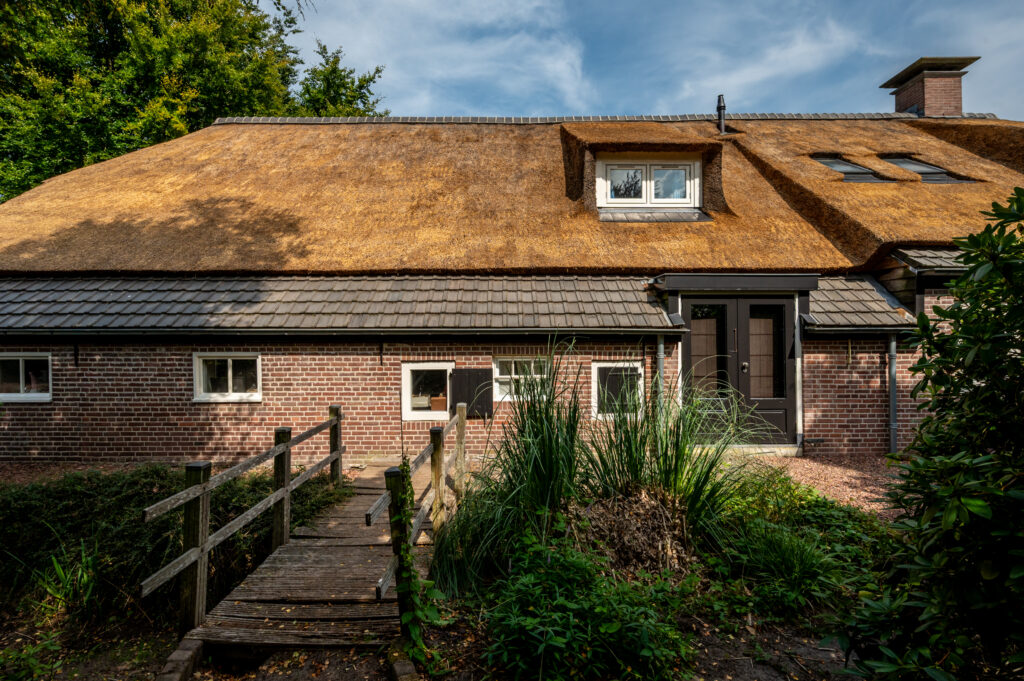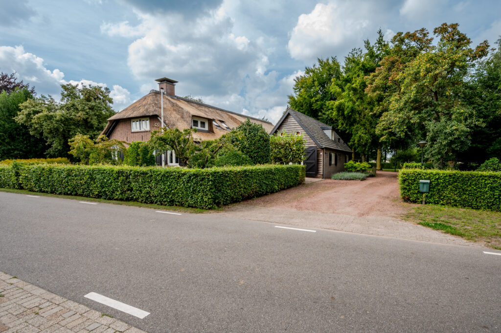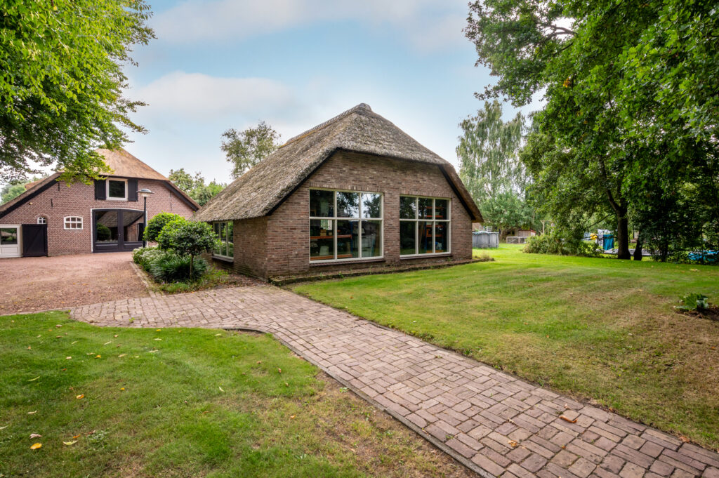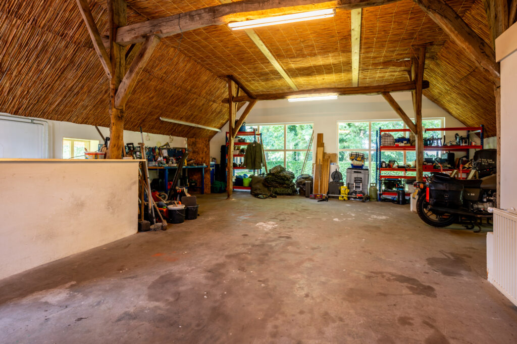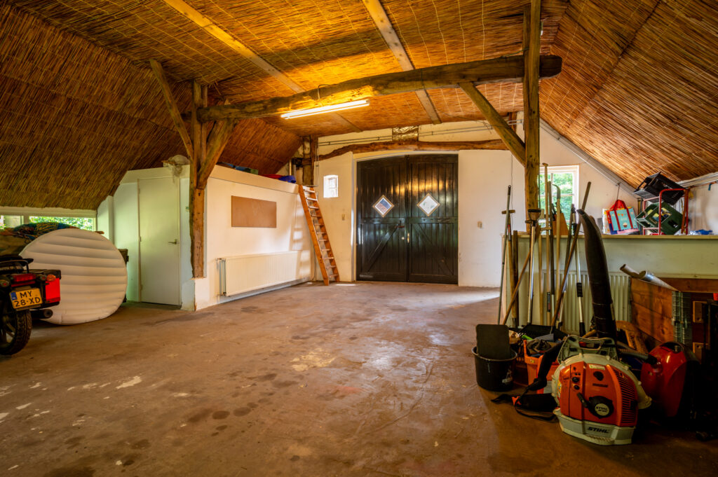 Achter de woonboerderij staat een bijgebouw met traditioneel rieten kap voorzien van verwarming en eigen CV. Ook zijn er voorbereidingen getroffen voor riolering en internet. Deze zeer ruime schuur biedt u volop ruimte voor uw kantoor aan huis of een B&B maar is ook zeer geschikt voor uw hobbyauto's en biedt mogelijkheden voor opslag, reparatie en onderhoud. Maar u kunt hier natuurlijk ook denken aan een gastenverblijf, expositieruimte of mogelijkheden tot inwoning of mantelzorg. Er is een separate ingang voor de technische ruimte met CV en ontijzeringsfilter.