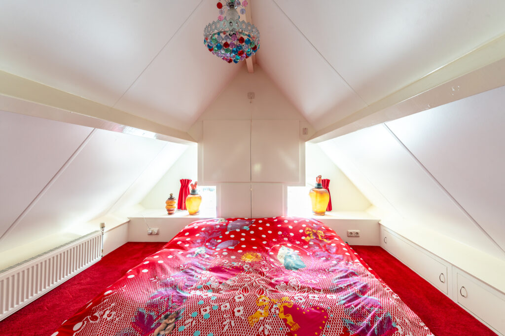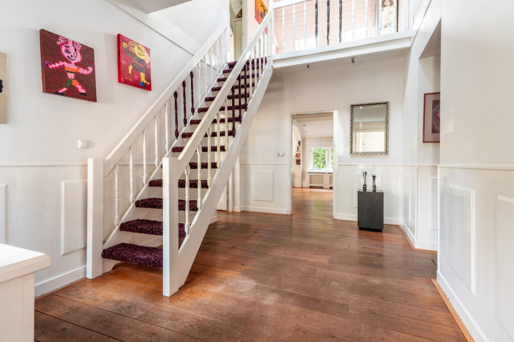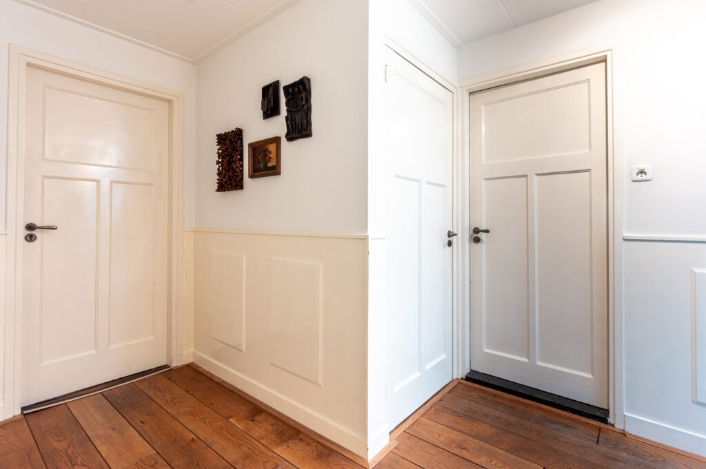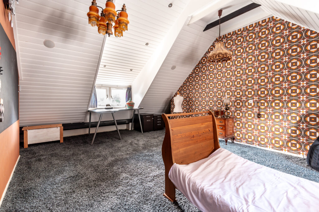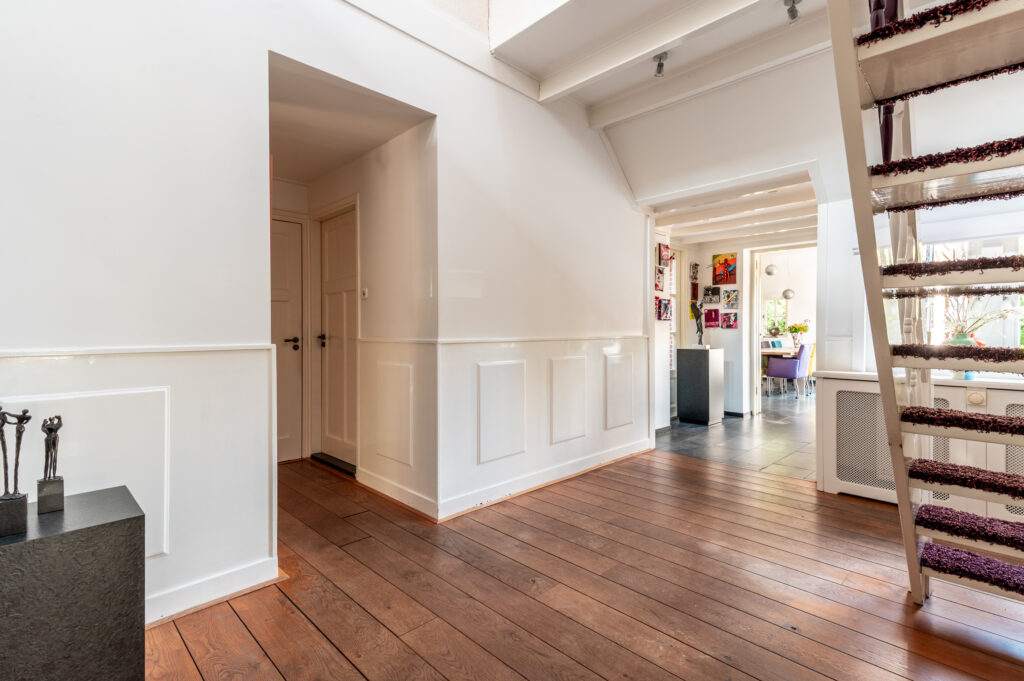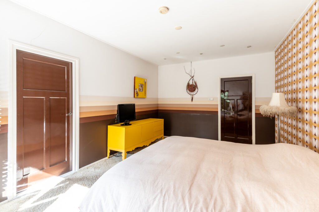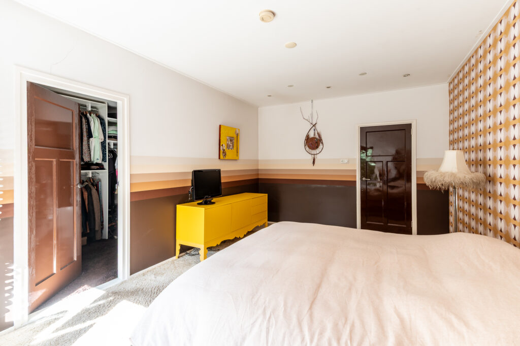 De houten trap met vide geeft toegang tot de royale eerste verdieping met ruime overloop en twee slaapkamers (2005). Aan de voorzijde is de eerste slaapkamer met hoge nok, twee dakkapellen, vernieuwde schoorsteen en airco. Ook is deze kamer voorzien van een wastafel. De slaapkamer rechts heeft eveneens een hoge nok, twee dakkapellen, een wastafel én een walk in closet. Tevens is de CV-ruimte hier gesitueerd.