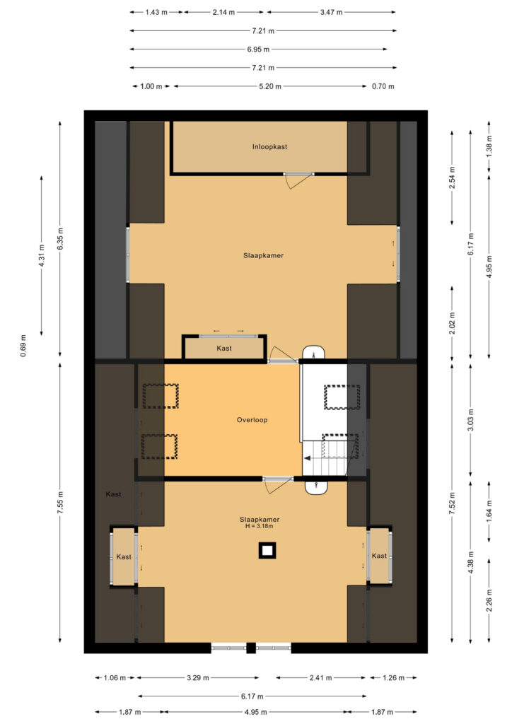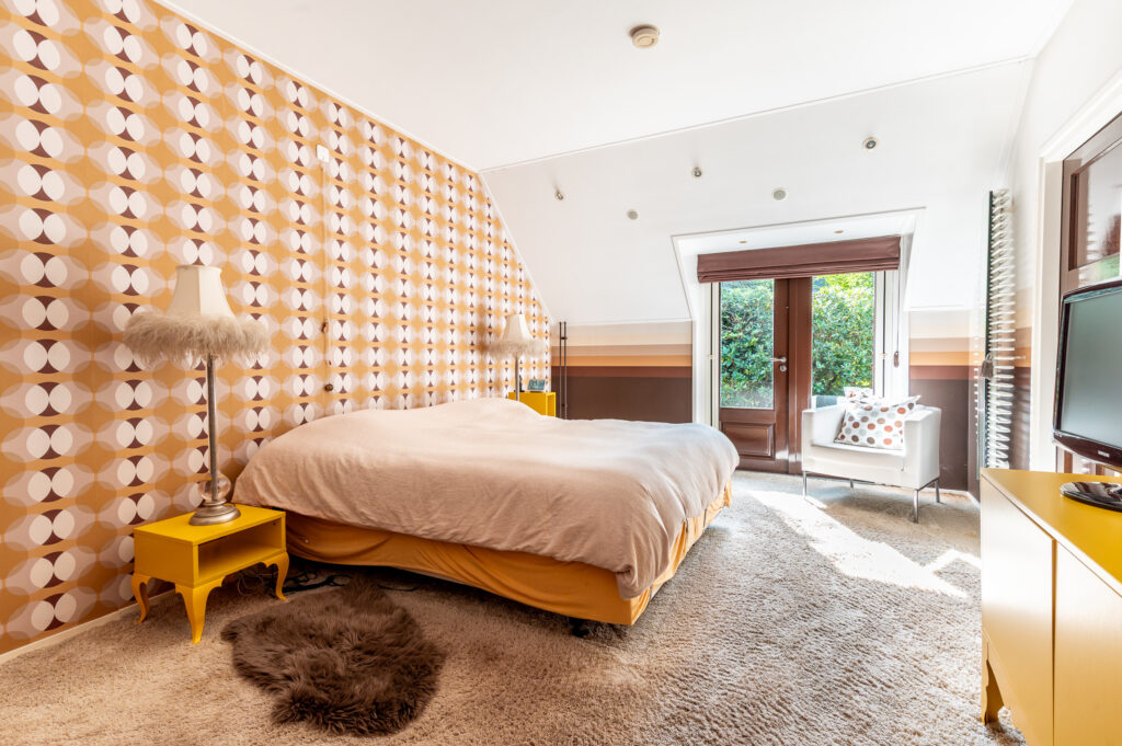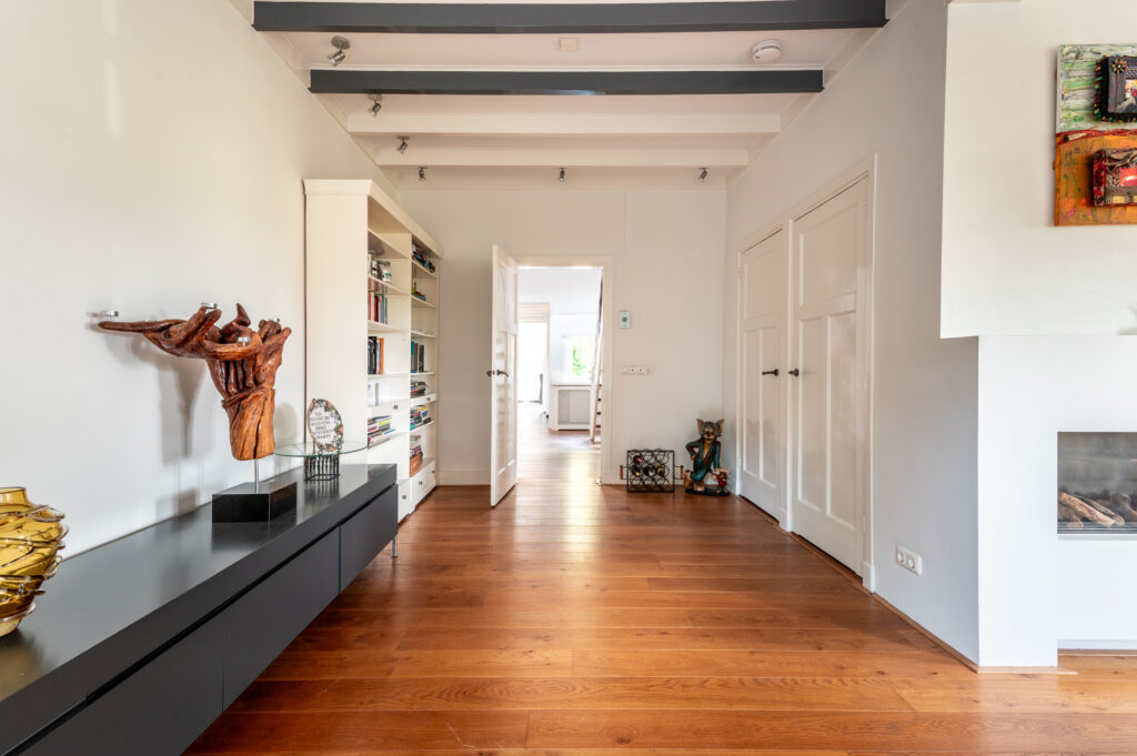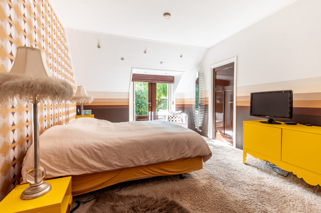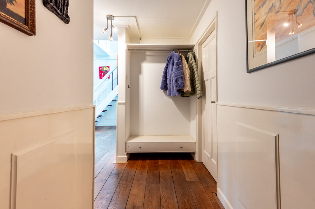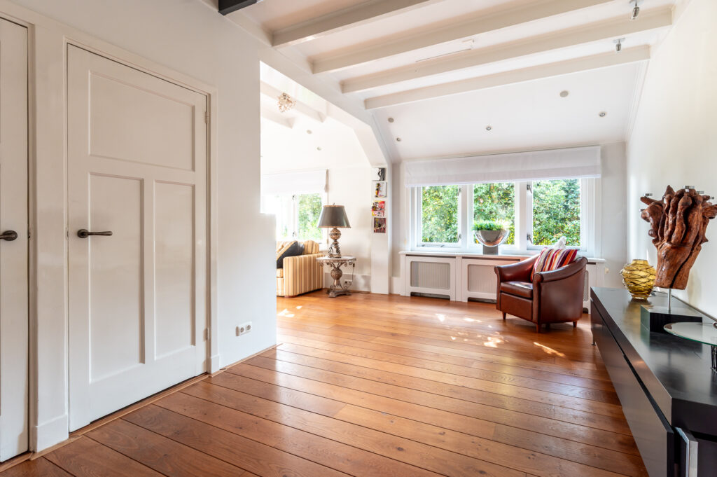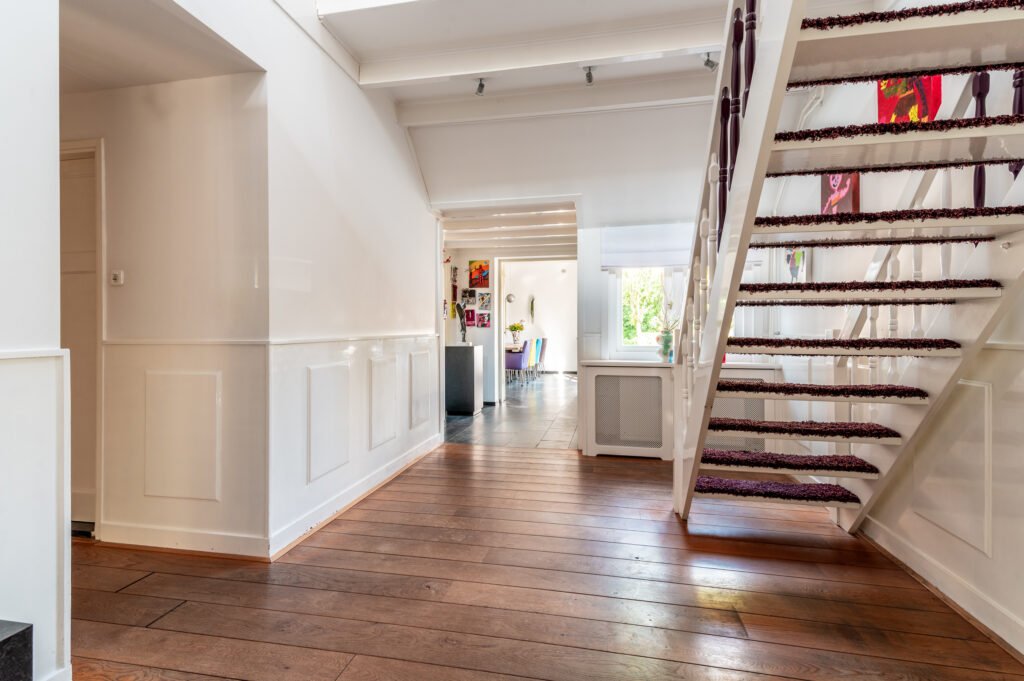 De houten trap met vide geeft toegang tot de royale eerste verdieping met ruime overloop en twee slaapkamers (2005). Aan de voorzijde is de eerste slaapkamer met hoge nok, twee dakkapellen, vernieuwde schoorsteen en airco. Ook is deze kamer voorzien van een wastafel. De slaapkamer rechts heeft eveneens een hoge nok, twee dakkapellen, een wastafel én een walk in closet. Tevens is de CV-ruimte hier gesitueerd.