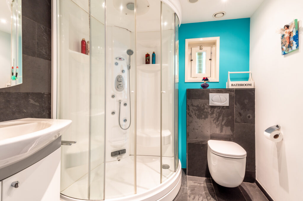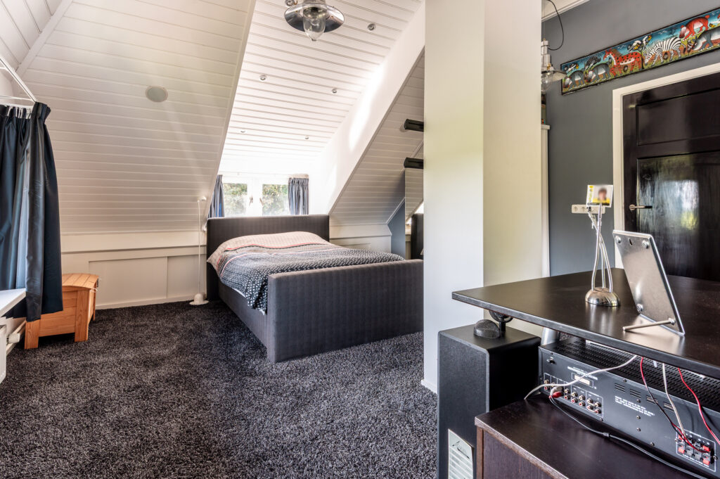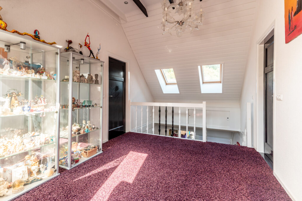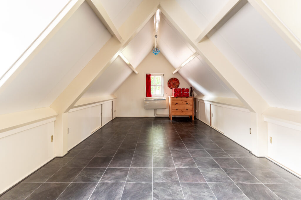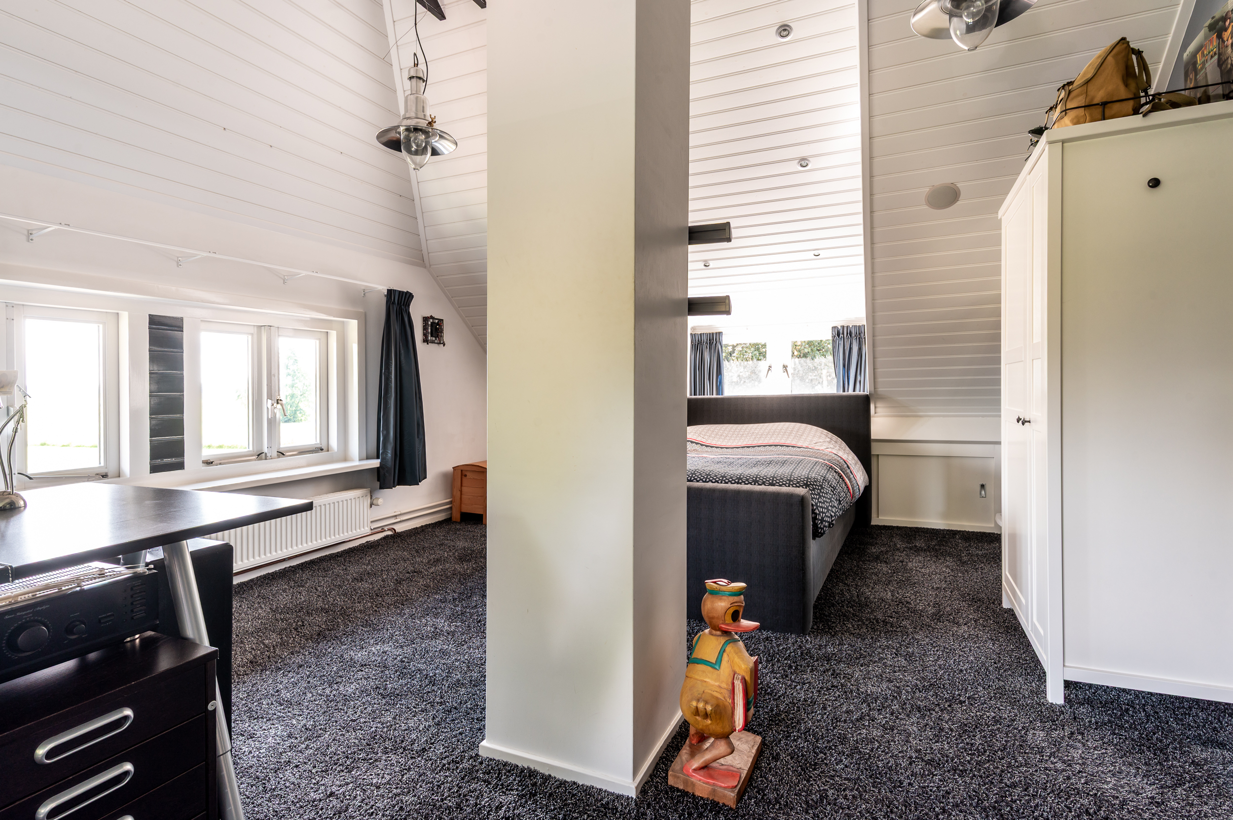 In de aanbouw geeft de vaste trap toegang tot de eerste verdieping voorzien van airco en met een verhoogd (slaap-)plateau, CV-ruimte en veel bergruimte.