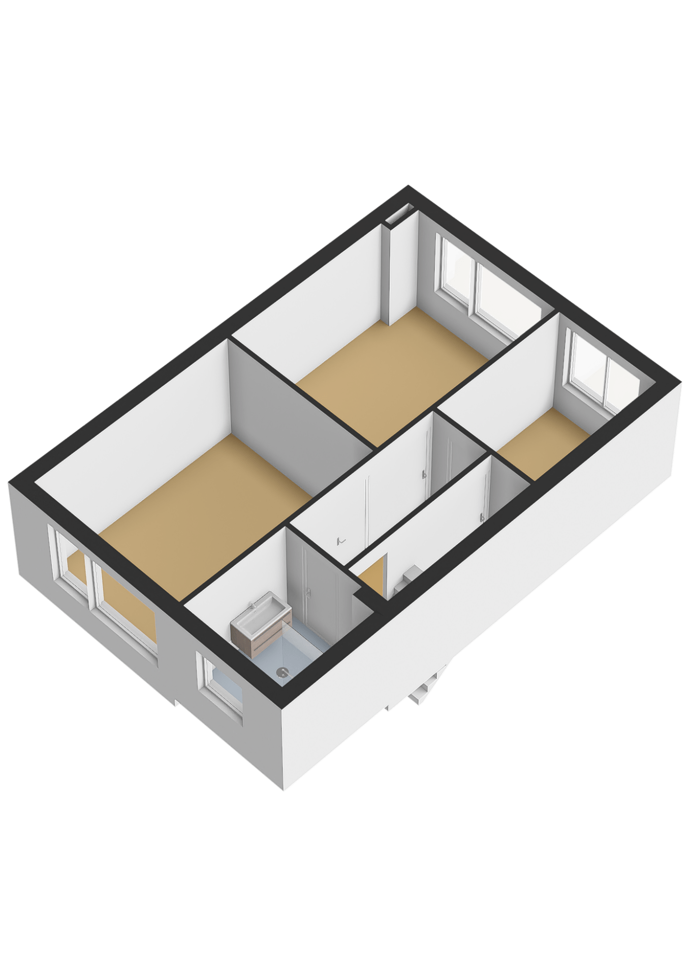 Overloop. Op deze verdieping bevinden zich drie ruime slaapkamers. Alle slaapkamers zijn voorzien van rolluiken. Volledig betegelde badkamer met inloopdouche, wastafelmeubel, 2e toilet en een designradiator.