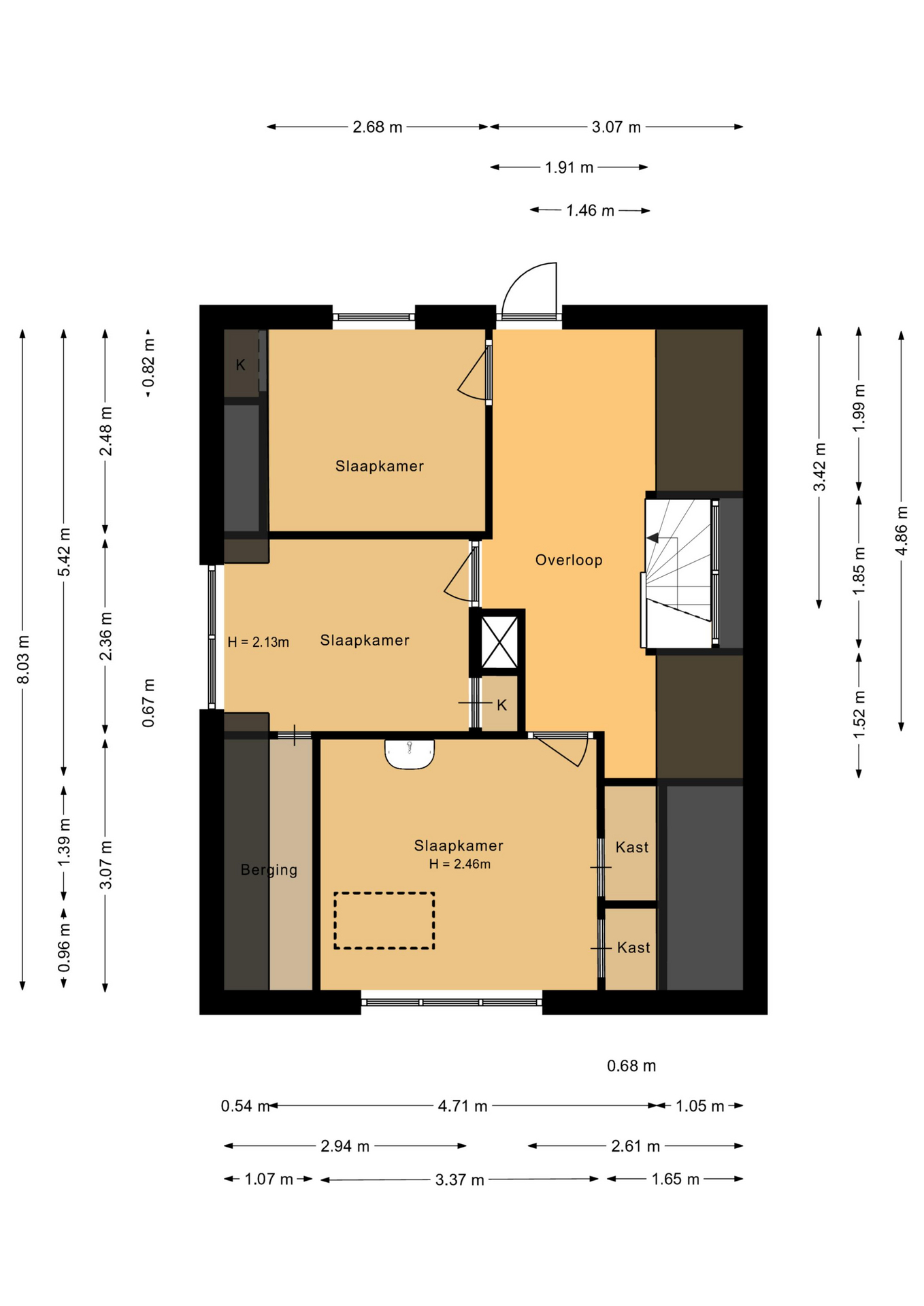 Middels vlizotrap te bereiken bergzolder.