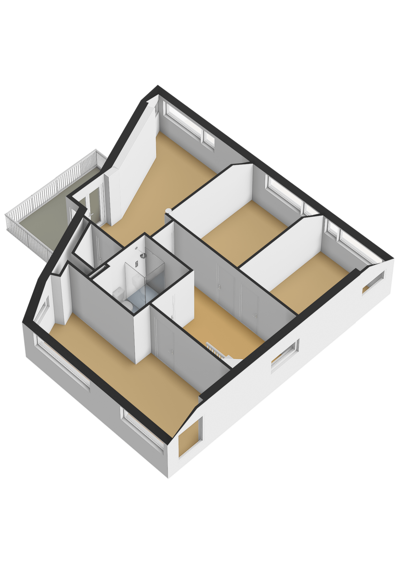Ruime overloop met mogelijkheid voor bv. een werkplek. Maar liefst drie slaapkamers aan de voorzijde van de woning waar de ouder slaapkamer zijn eigen dakterras heeft.