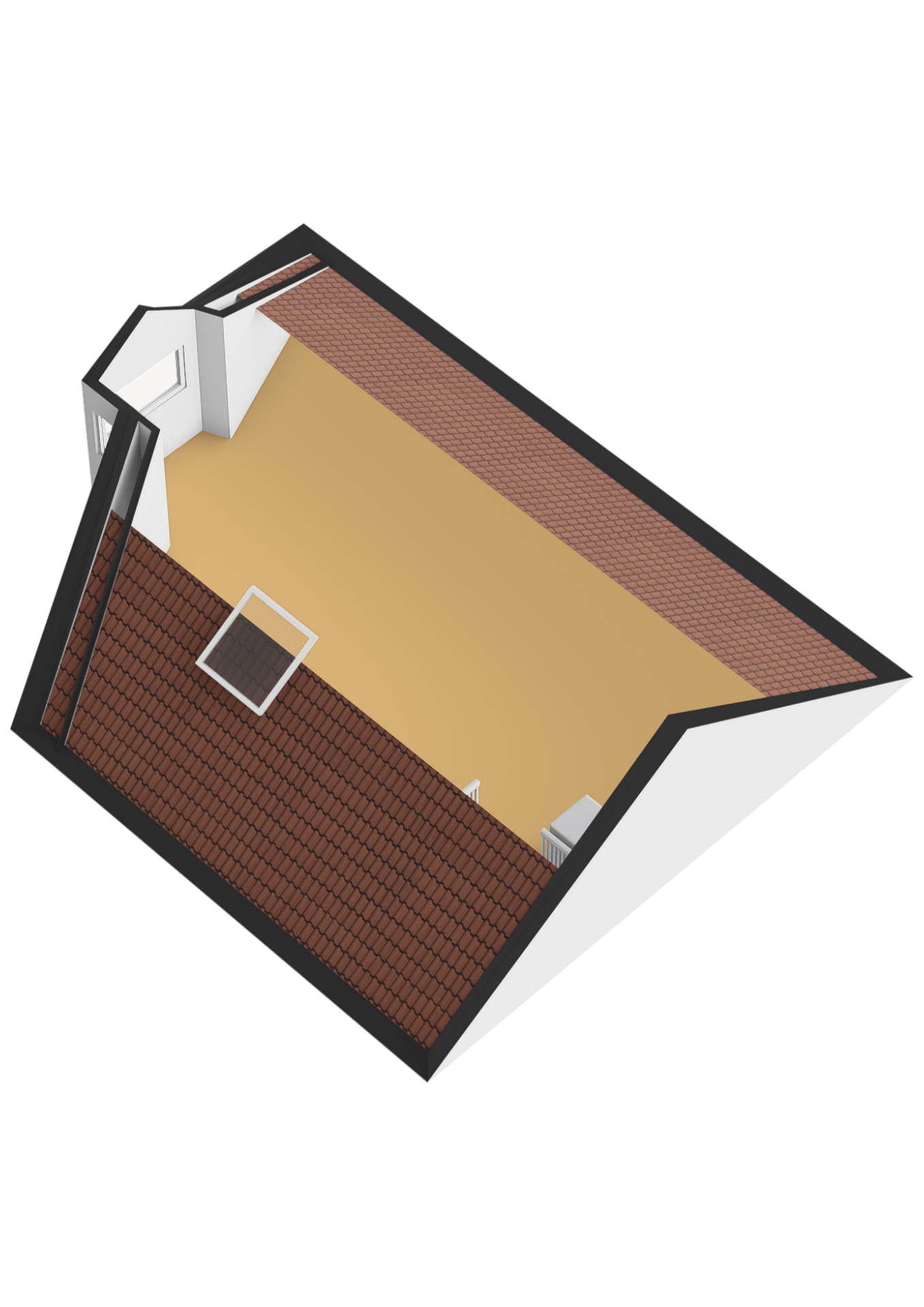 Royale bergzolder met zijraam en extra velux-dakvenster. Op deze verdieping is eenvoudige een 5e en/of 6e slaap/hobbykamer te realiseren. Ook treft u hier de wasmachineaansluiting en de c.v. opstelling.