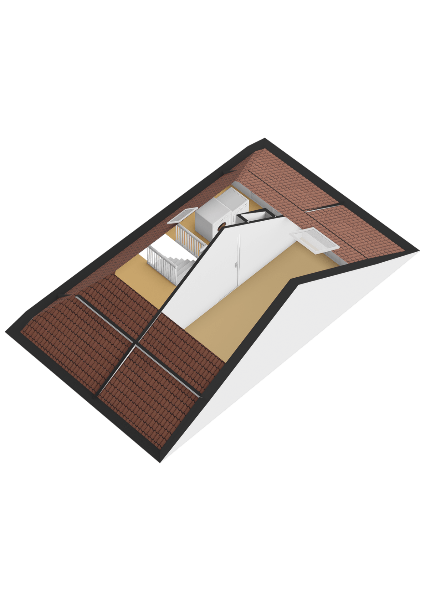 De voorzolder is voorzien van een dakraam, bergruimte achter de knieschotten en de aansluiting voor de wasmachine en droger. De vierde slaap-/hobbykamer is ook voorzien van een dakraam en ook hier is voldoende bergruimte achter het knieschot.