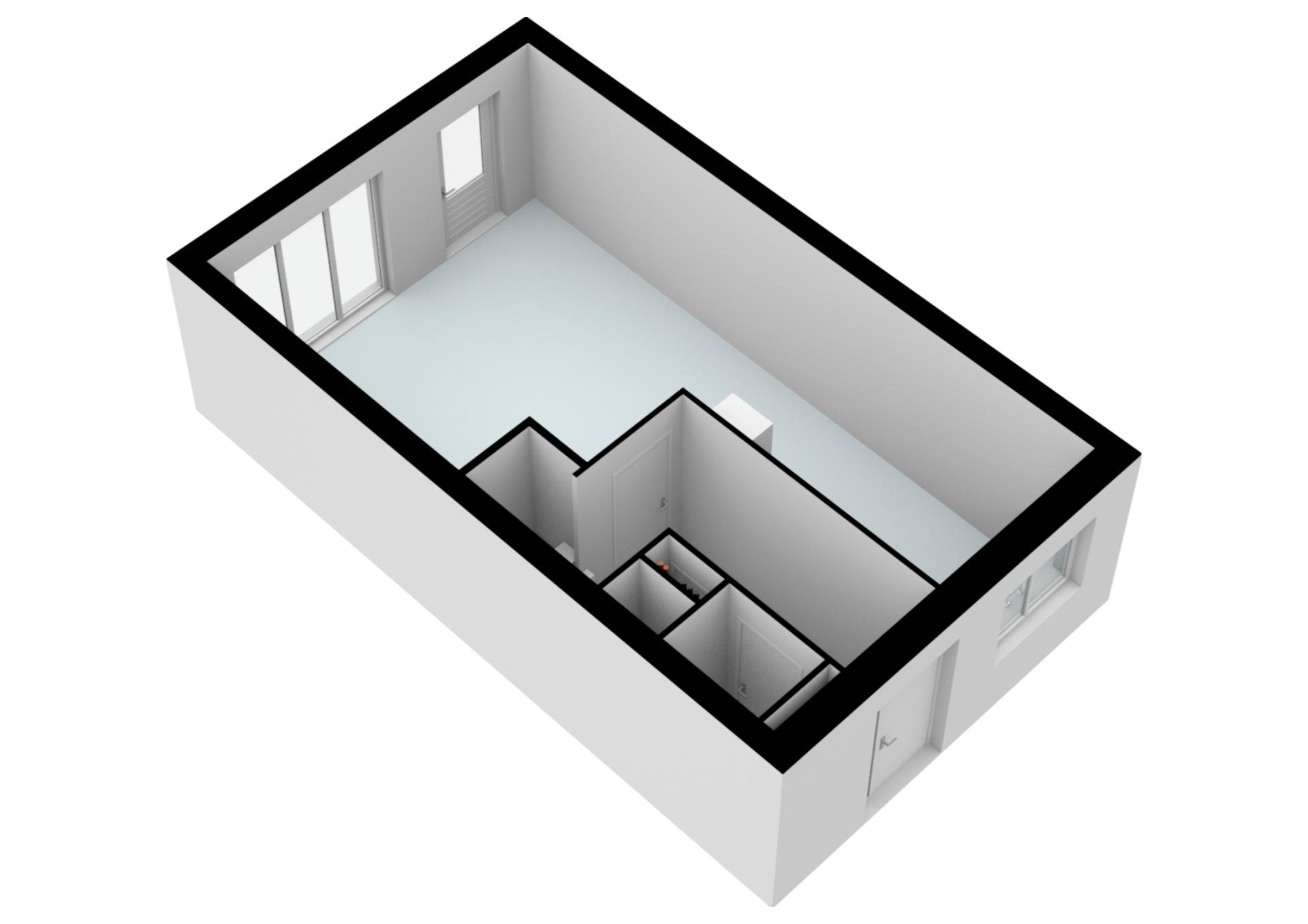 Entree, met de trapopgang en toegang tot de toiletruimte. Aan de voorzijde van de woning bevindt zich de keuken, deze is voorzien van de benodigde inbouwapparatuur. Aan de achterzijde treft u de woonkamer waar u kunt genieten van uw rust en privacy. Deze kamer is uitgevoerd met een plavuizen vloer, voorzien van vloerverwarming als hoofdverwarming.