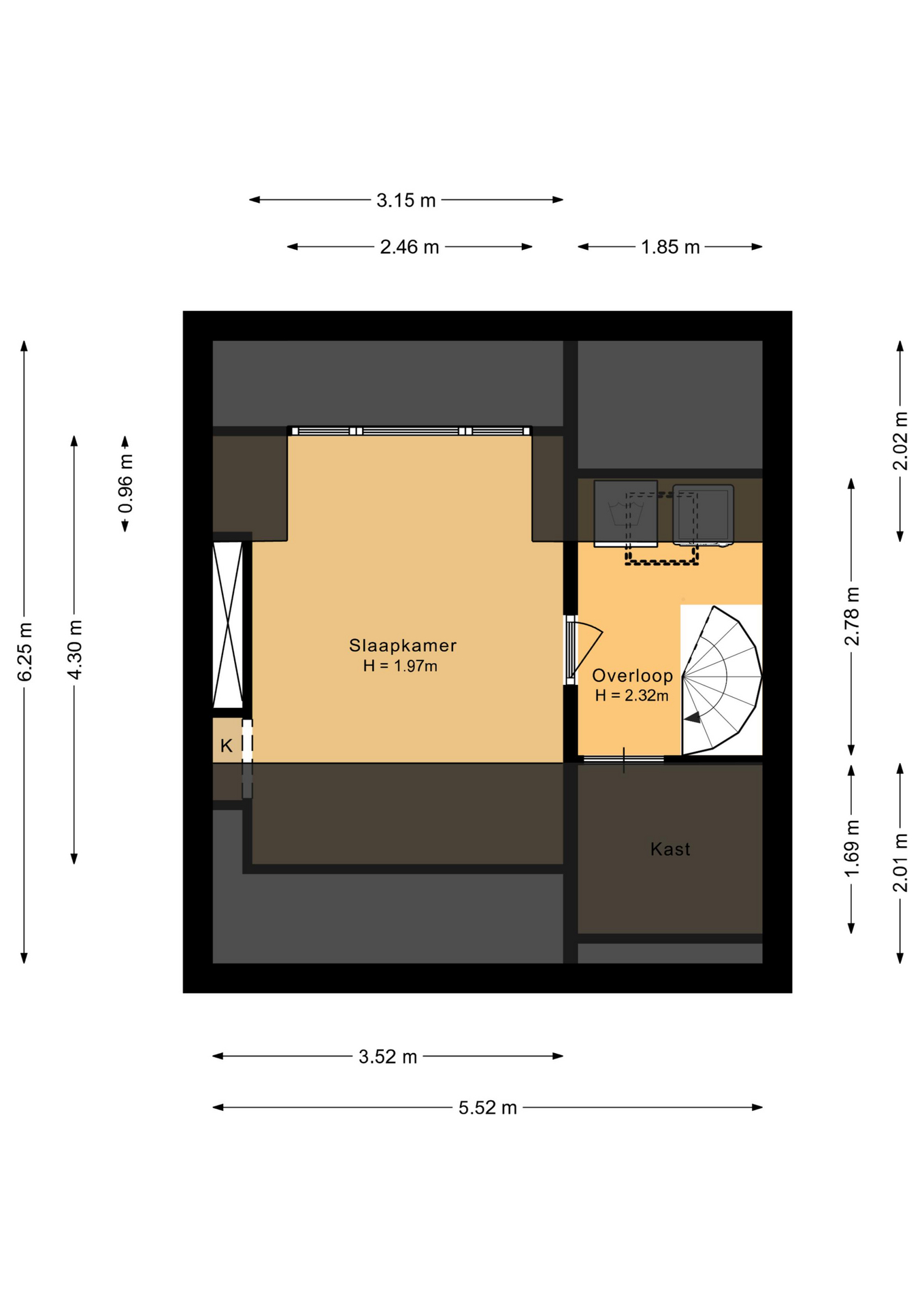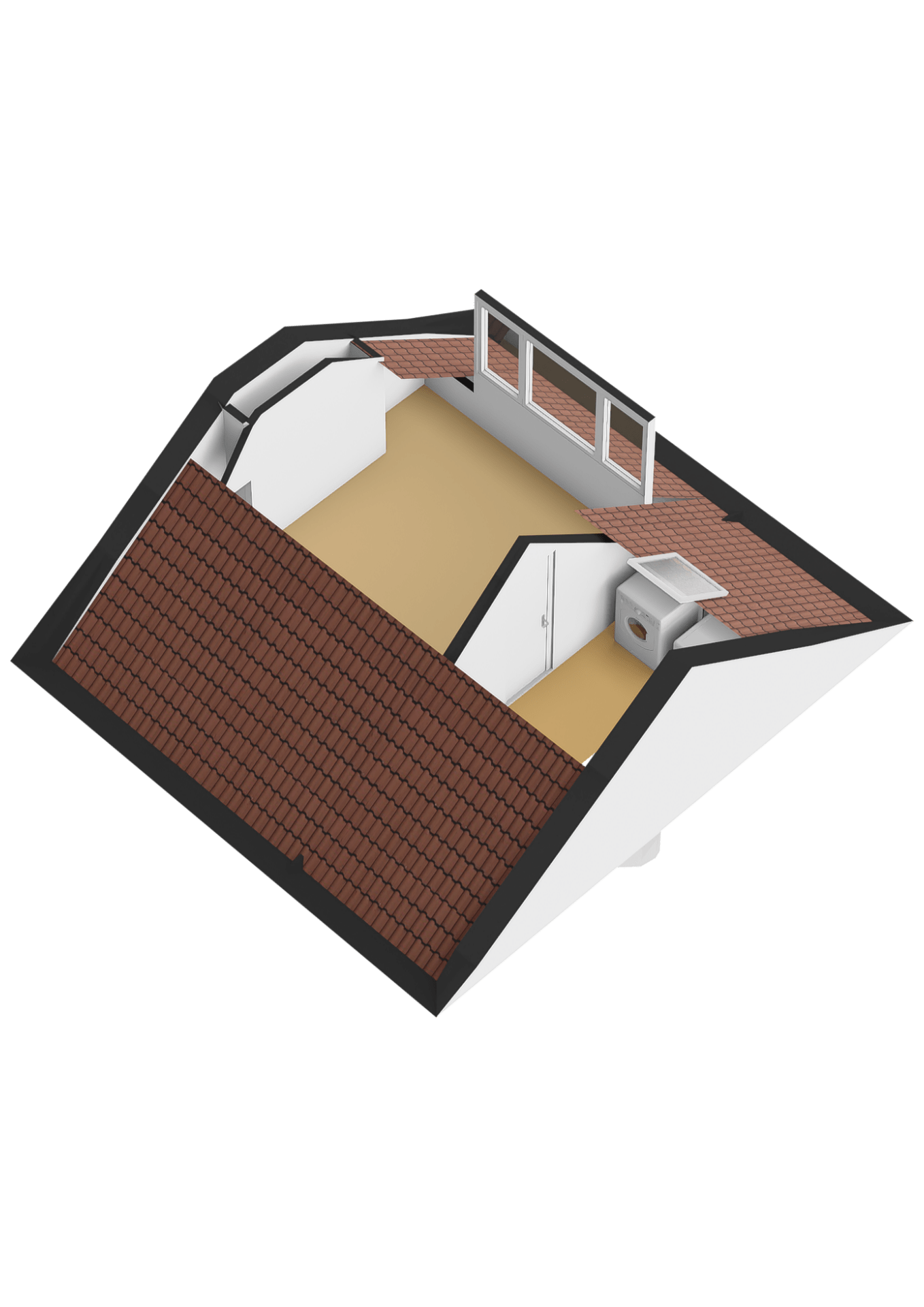 Voorzolder met de aansluiting voor de wasmachine en droger. Ruime vierde slaap-/hobbykamer met dakkapel.