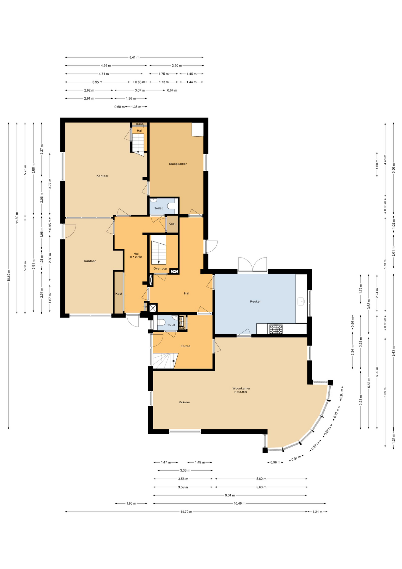 De kantoor-/bedrijfsruimte aan de voorzijde van de woning heeft een separate entree.