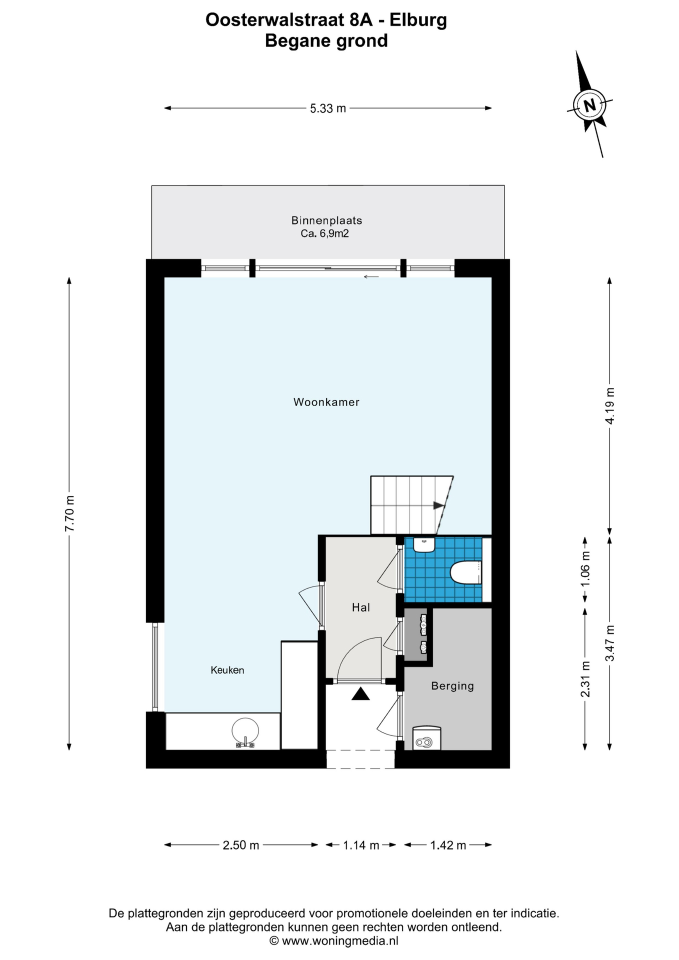 Via het overdekte entree kom je binnen in de hal met toegang tot het toilet. Vanuit het entree is de berging met HR combiketel te bereiken.
