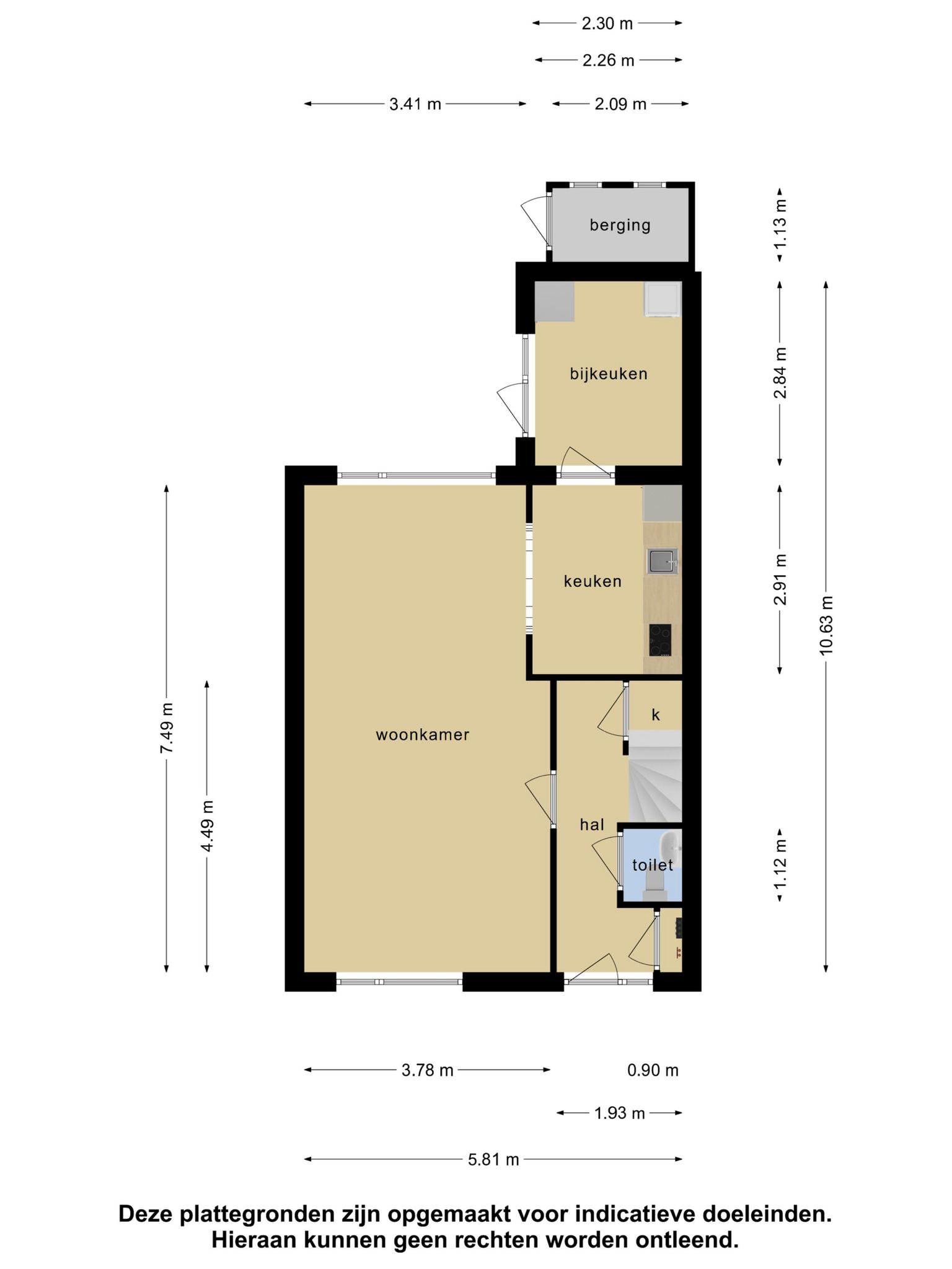 Entree met toilet en trapkast. Woonkamer met houten vloerdelen. Open keuken met hoekopstelling v.v. inductiekookplaat met afzuigkap, oven, koel / vries combinatie en vaatwasmachine. Bijkeuken met aansluiting wasmachine.