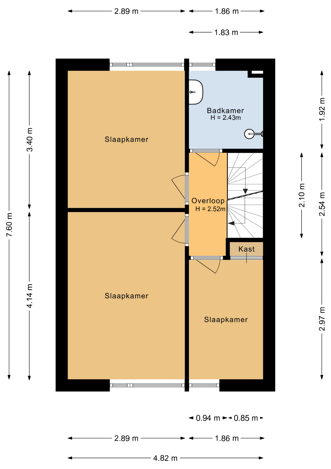 Binnen stap je een praktische ingedeelde woning. Op de eerste verdieping bevinden zich drie slaapkamers. De tweede verdieping biedt nog eens twee extra slaapkamers, perfect voor een groeiend gezin, logees, thuiswerkplek of hobbyruimte.