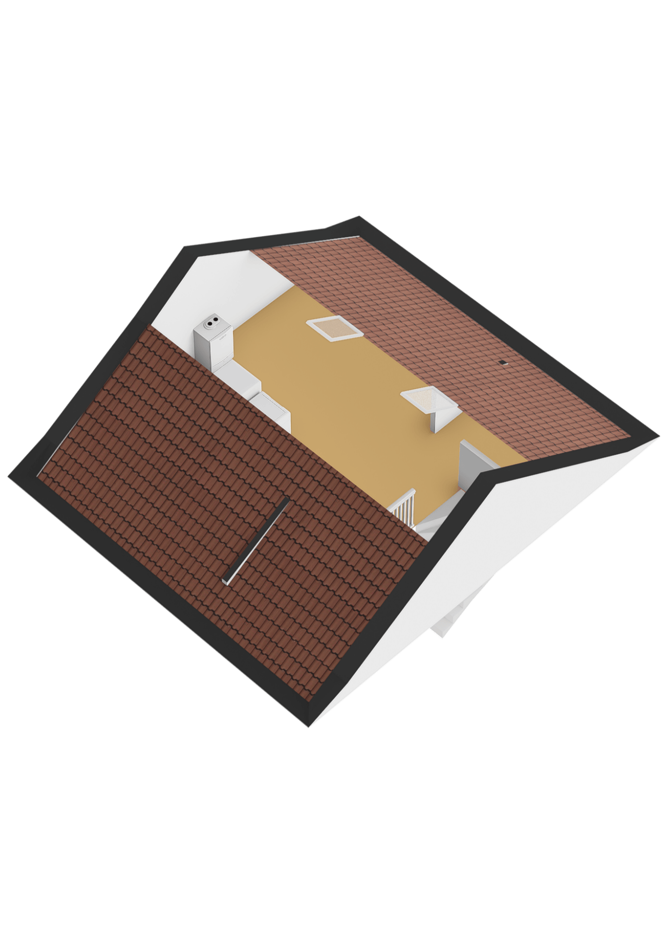 De ruime zolderverdieping is bereikbaar via een vaste trap en voorzien van twee dakramen. Deze ruimte biedt volop mogelijkheden voor het realiseren van een vierde slaapkamer, een kantoor of hobbyruimte. Daarnaast vind je de Cv-opstelling en de aansluiting voor de aansluitingen voor de wasmachine en droger.