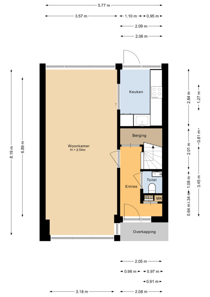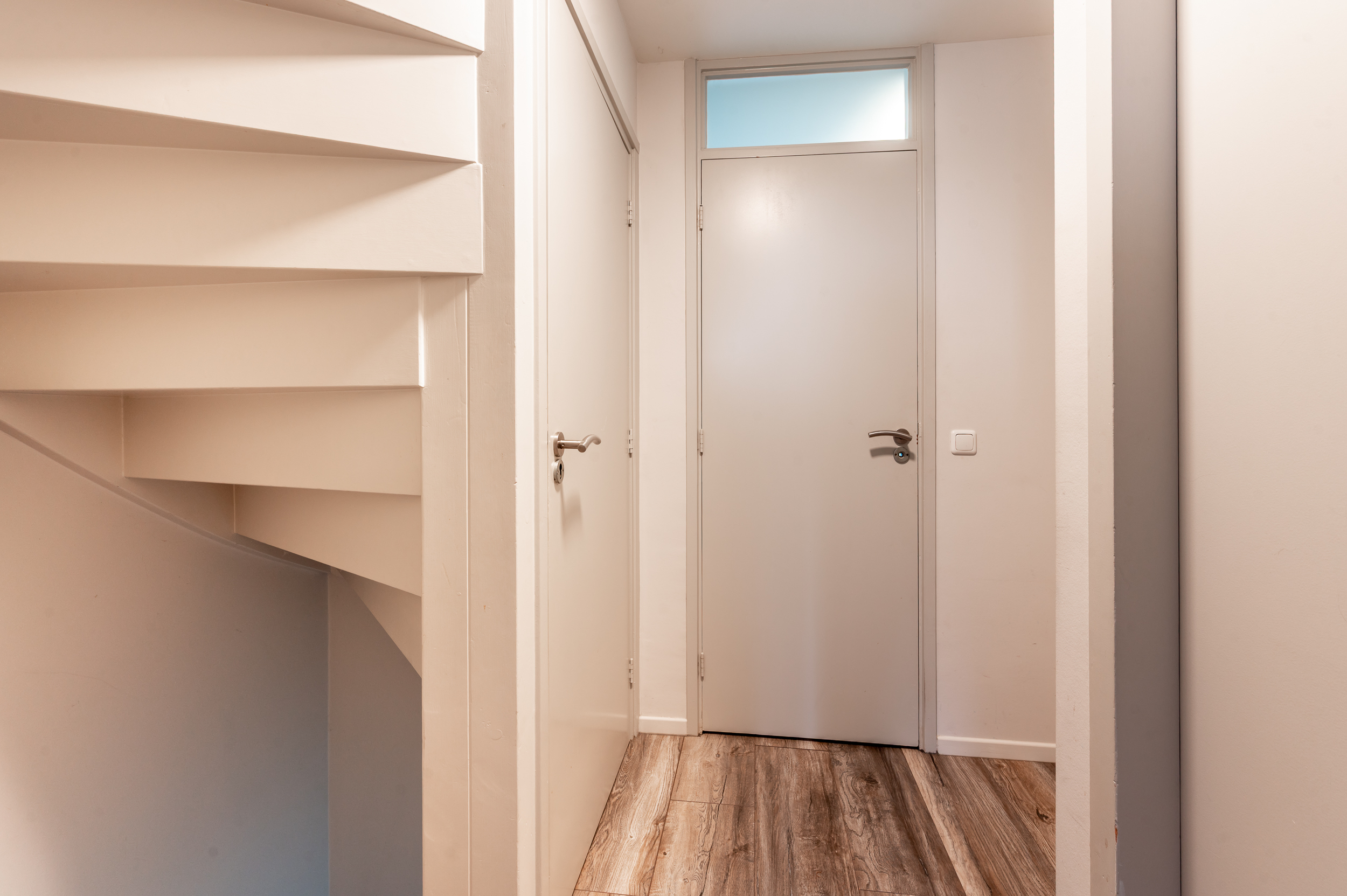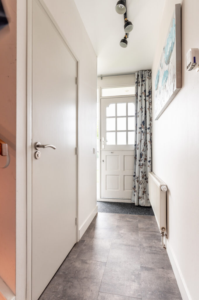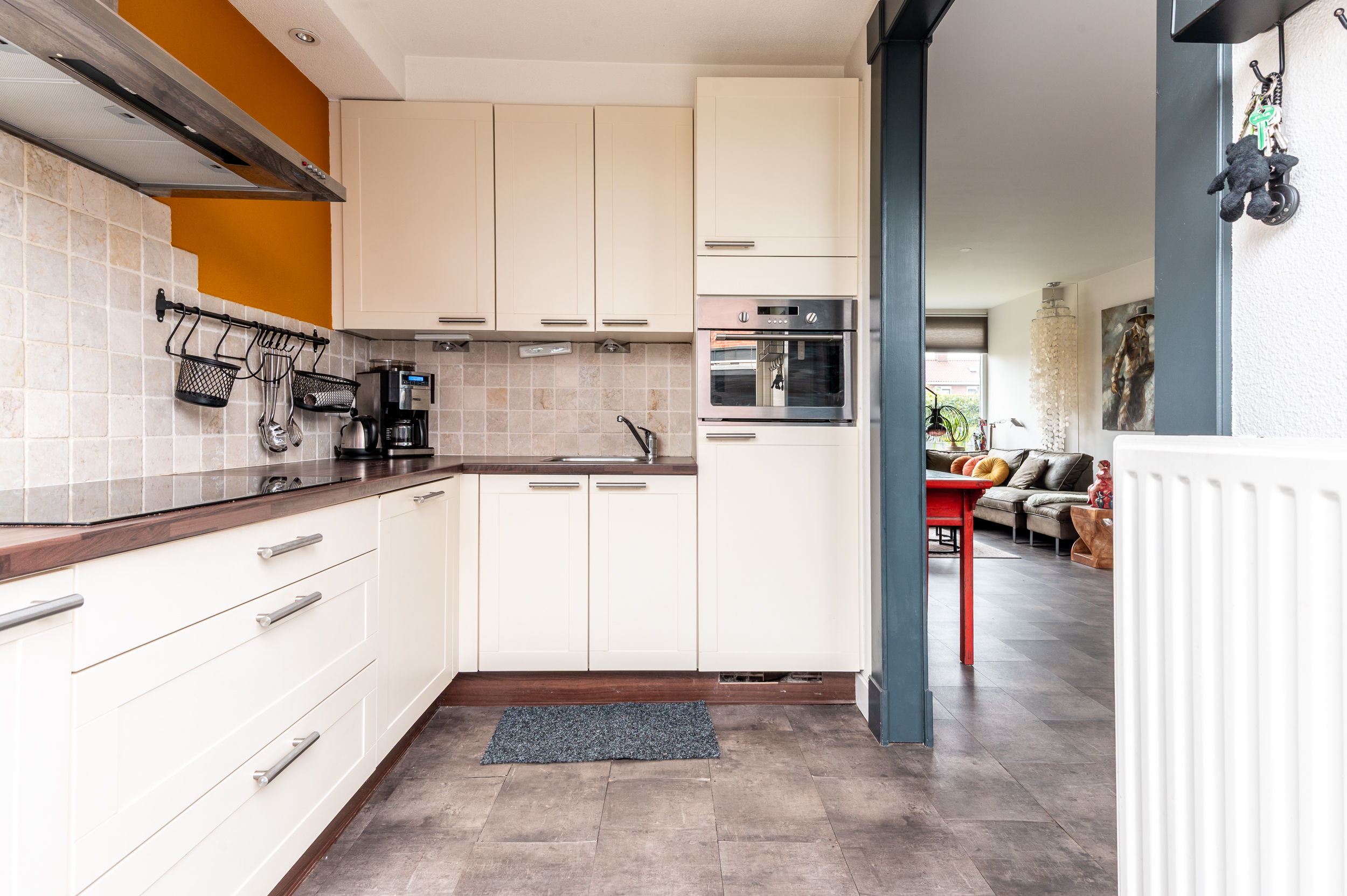 Via de entree kom je in de hal met toegang tot de vernieuwde toiletruimte en de trap naar de eerste verdieping. De gezellige woonkamer met erker zorgt voor veel lichtinval en een fijne sfeer. Aan de achterzijde bevindt zich de open keuken, uitgevoerd in een praktische L-opstelling, uiteraard voorzien van alle benodigde inbouwapparatuur.