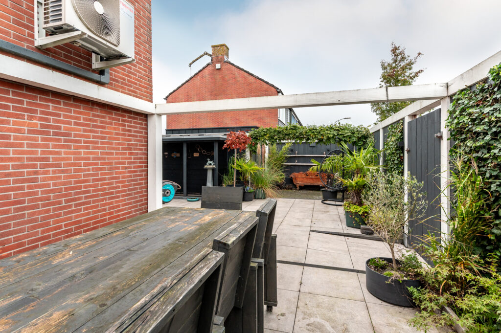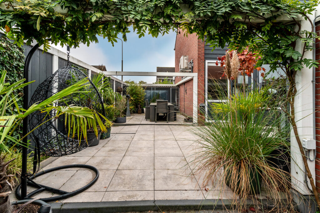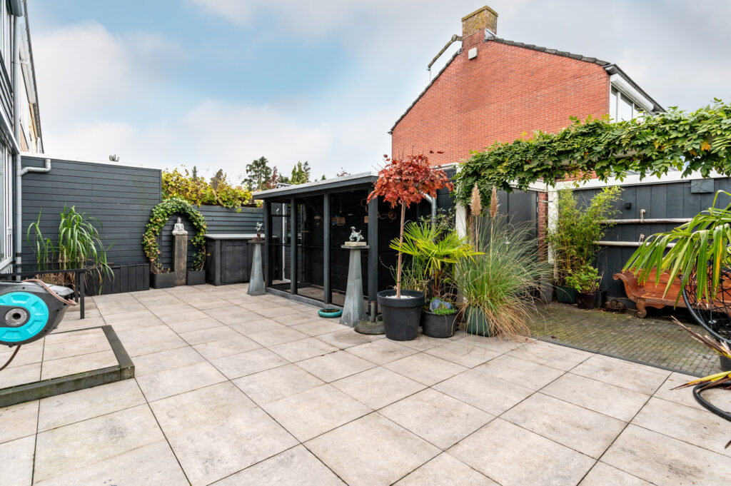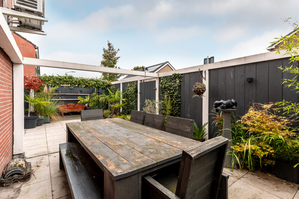 De achtertuin, gunstig gelegen op het zonnige westen, is in 2021 volledig opnieuw aangelegd en is een heerlijke plek om te ontspannen, te barbecueën of te genieten van de zon. Dankzij de hoekligging heb je hier volop ruimte en privacy.