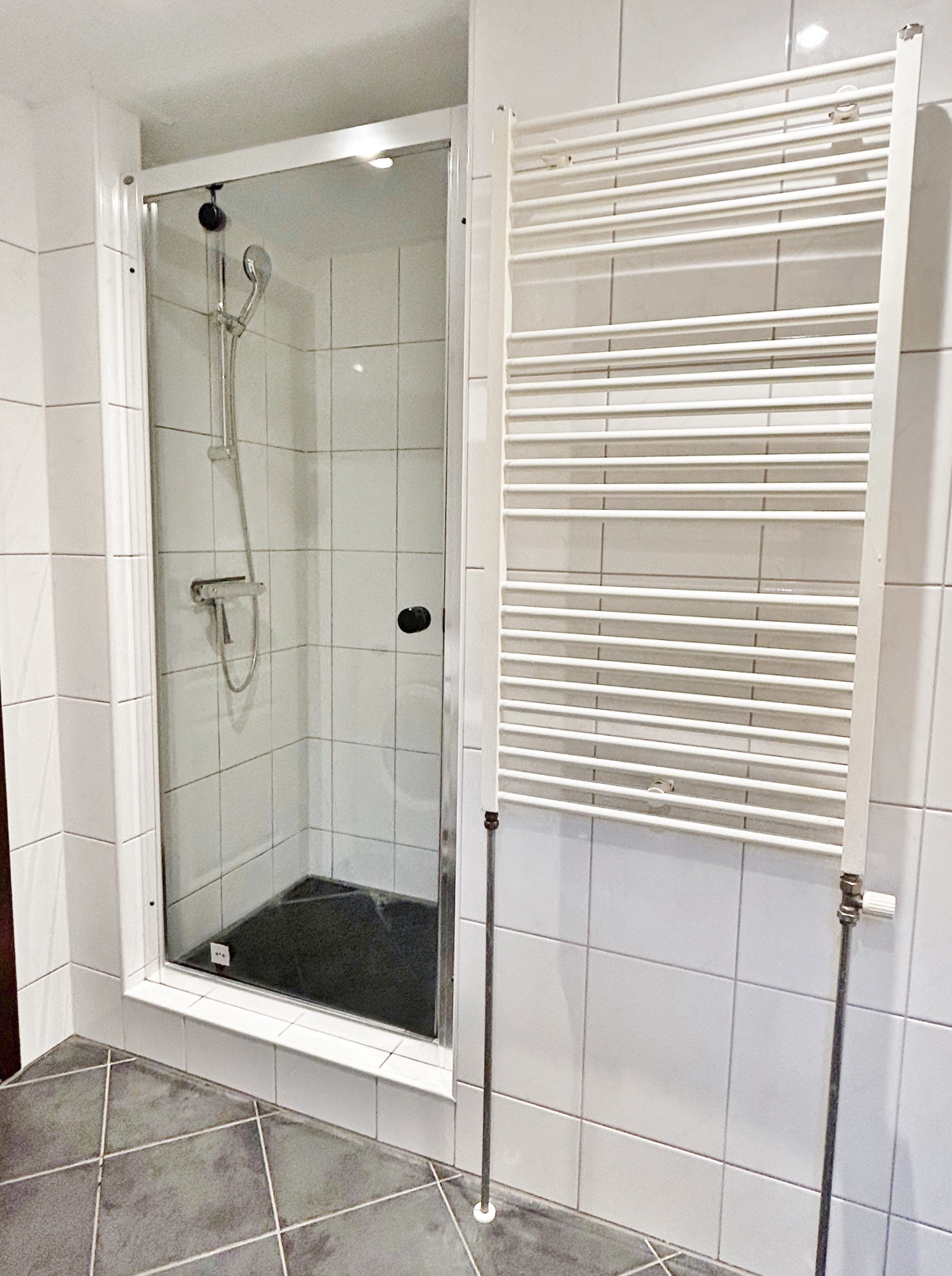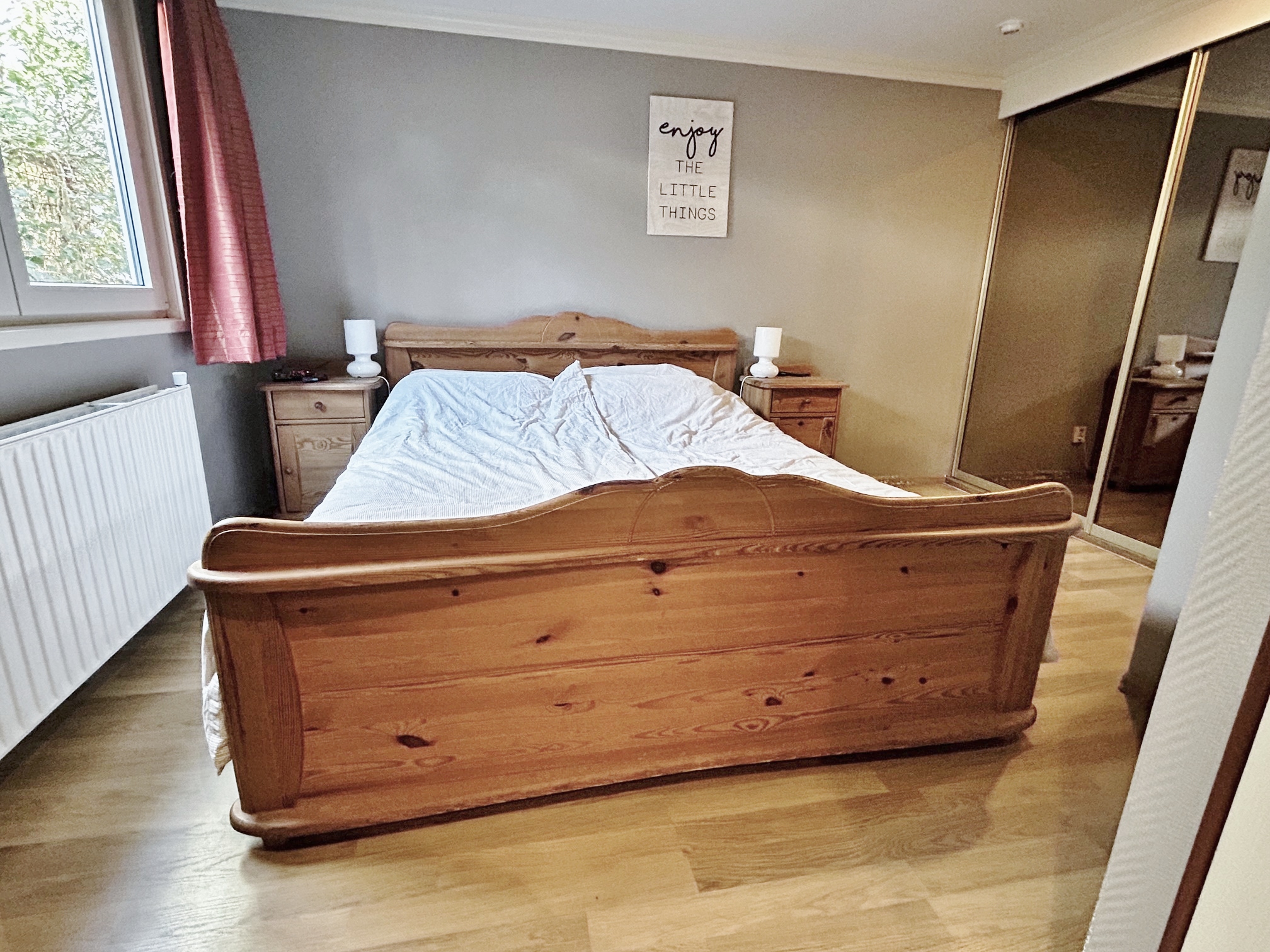 In de slaapkamer zijn inbouwkasten met spiegels te vinden zodat er genoeg ruimte is om kleding op te bergen. In de geheel betegelde badkamer vindt u een badkamermeubel, een designradiator, een douche, een wasmachine en een droger.