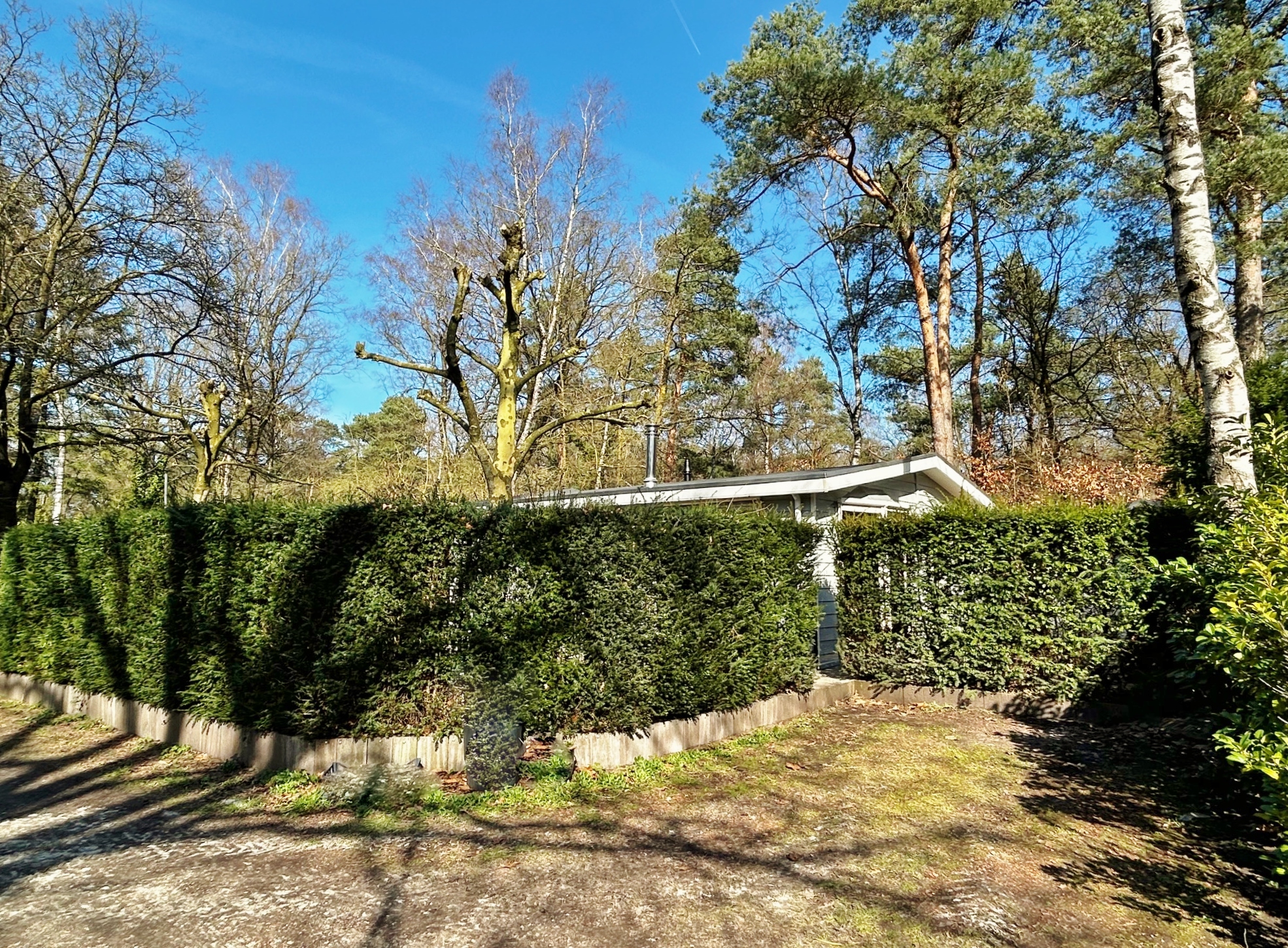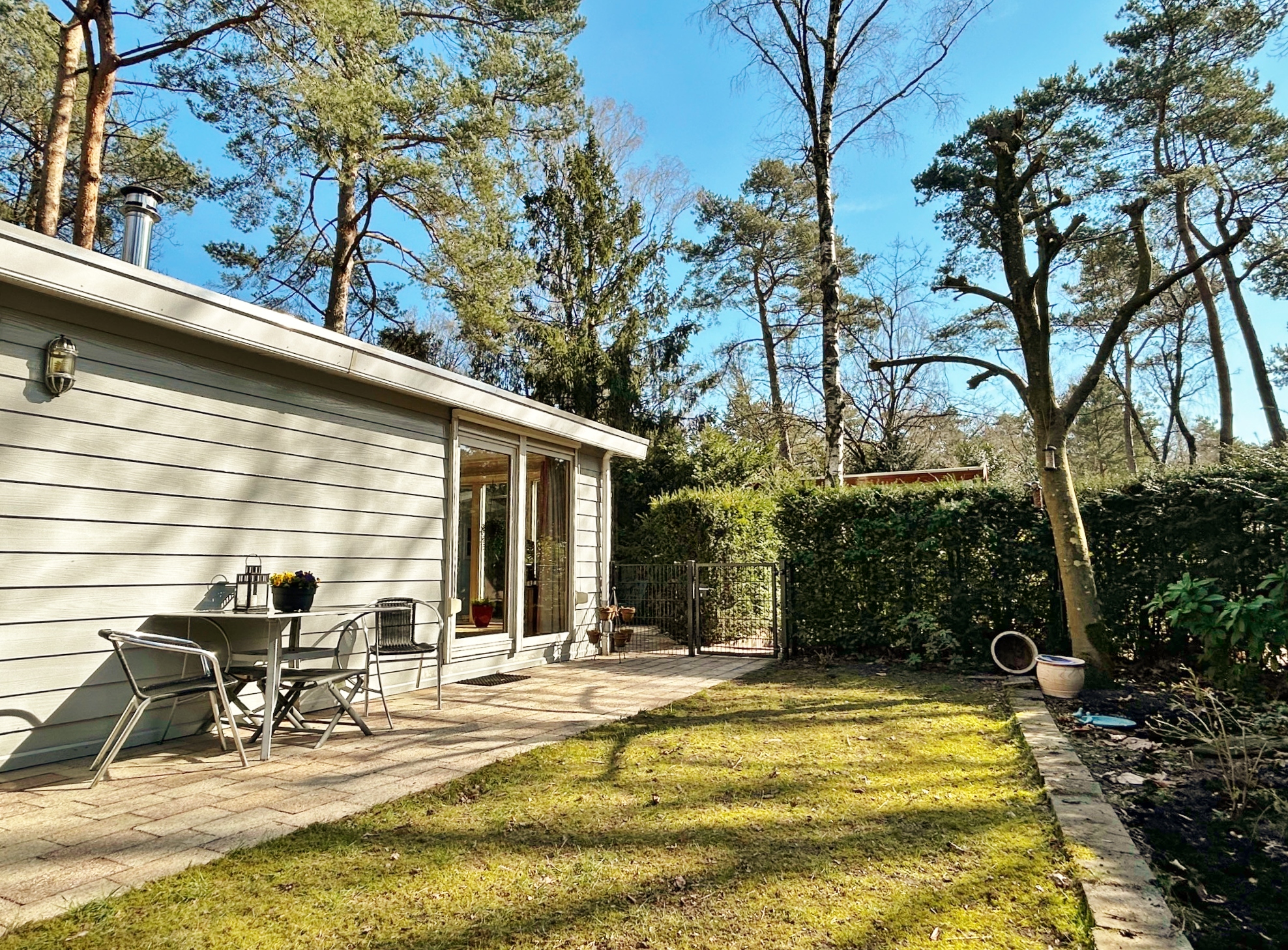 Het chalet van ca. 60 m² staat midden in de natuur, in een bosrijke omgeving, op een perceel van 237 m² eigen grond! Het is omgeven door prachtige dennenbomen, met diverse terrasmogelijkheden zodat u op elk moment van de dag heerlijk van de zon of schaduw kunt genieten.