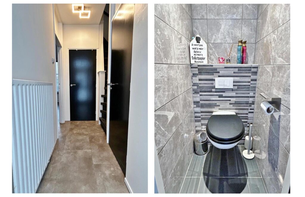 Via het entree zijn het vrij hangend toilet en de ruime provisie trapkast te bereiken.