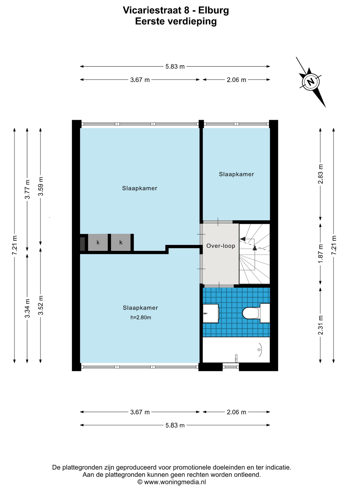 Middels de overloop zijn de drie slaapkamers te bereiken. De grote slaapkamer aan de achterzijde beschikt over vaste kastruimte.