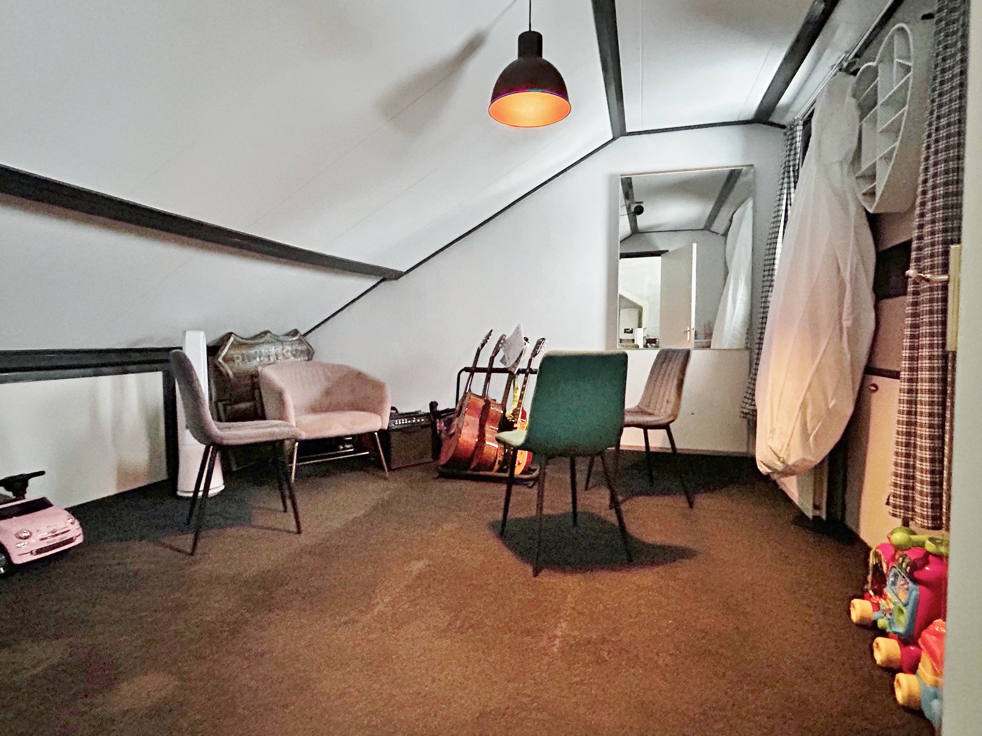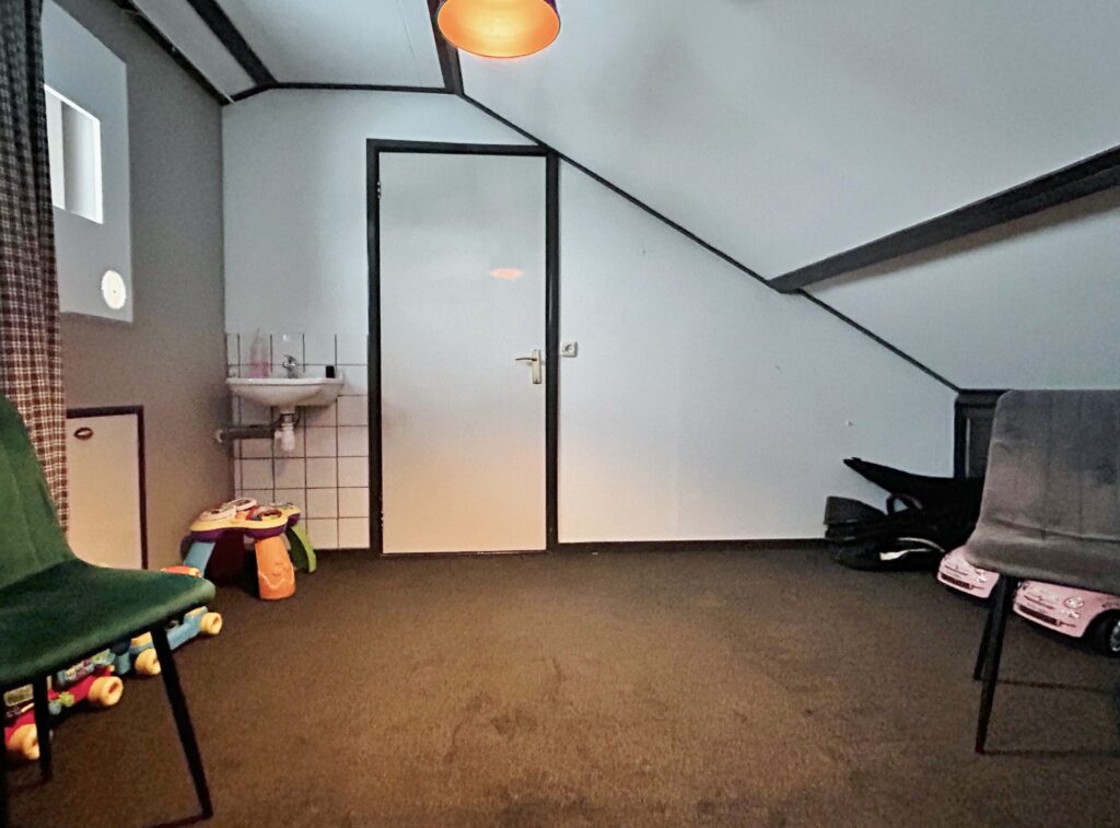 Voorzolder met HR combiketel, omvormer en aansluiting wasmachine. Vierde slaapkamer met bergruimte in het knieschot.