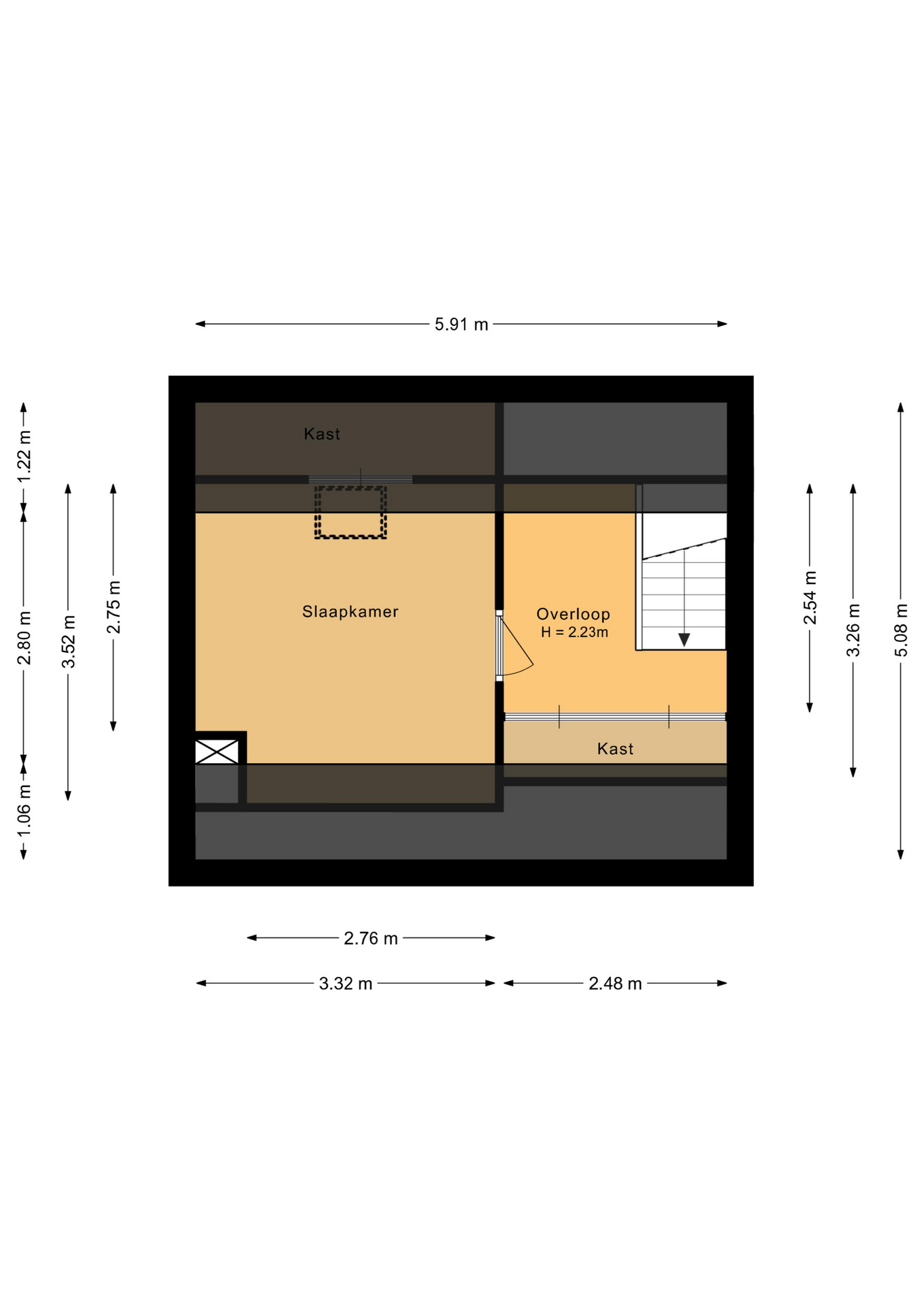 Voorzolder met bergruimte en 4e slaap-/hobbykamer.