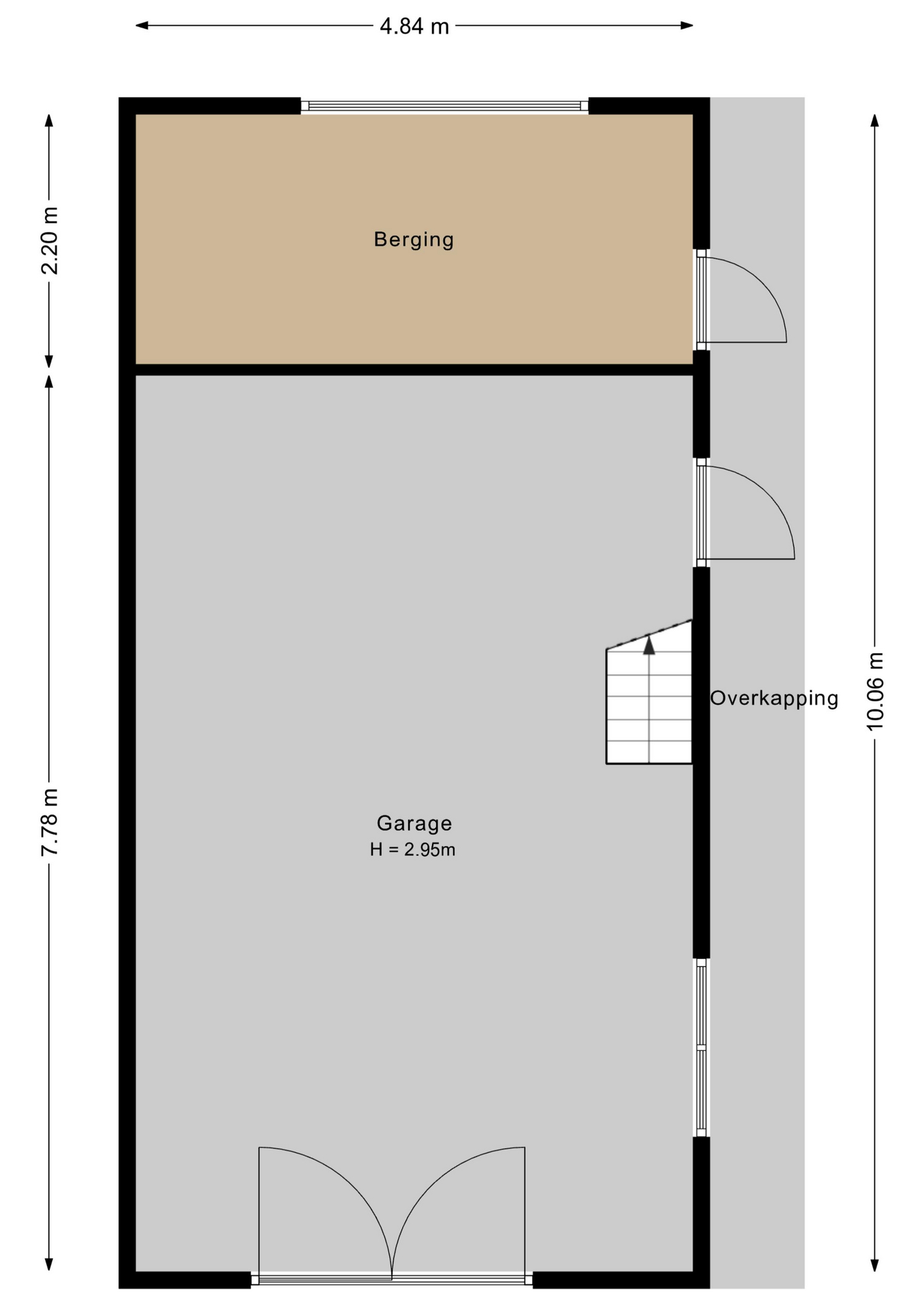 Begane grond: garage en afzonderlijke berging, ca. 49 m²