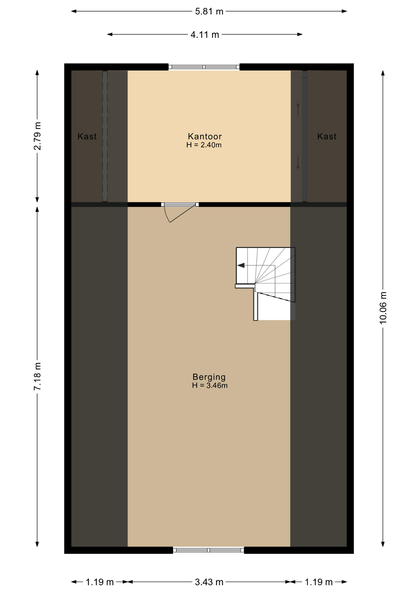 Verdieping: opslag-/kantoorruimte, ca 34 m²